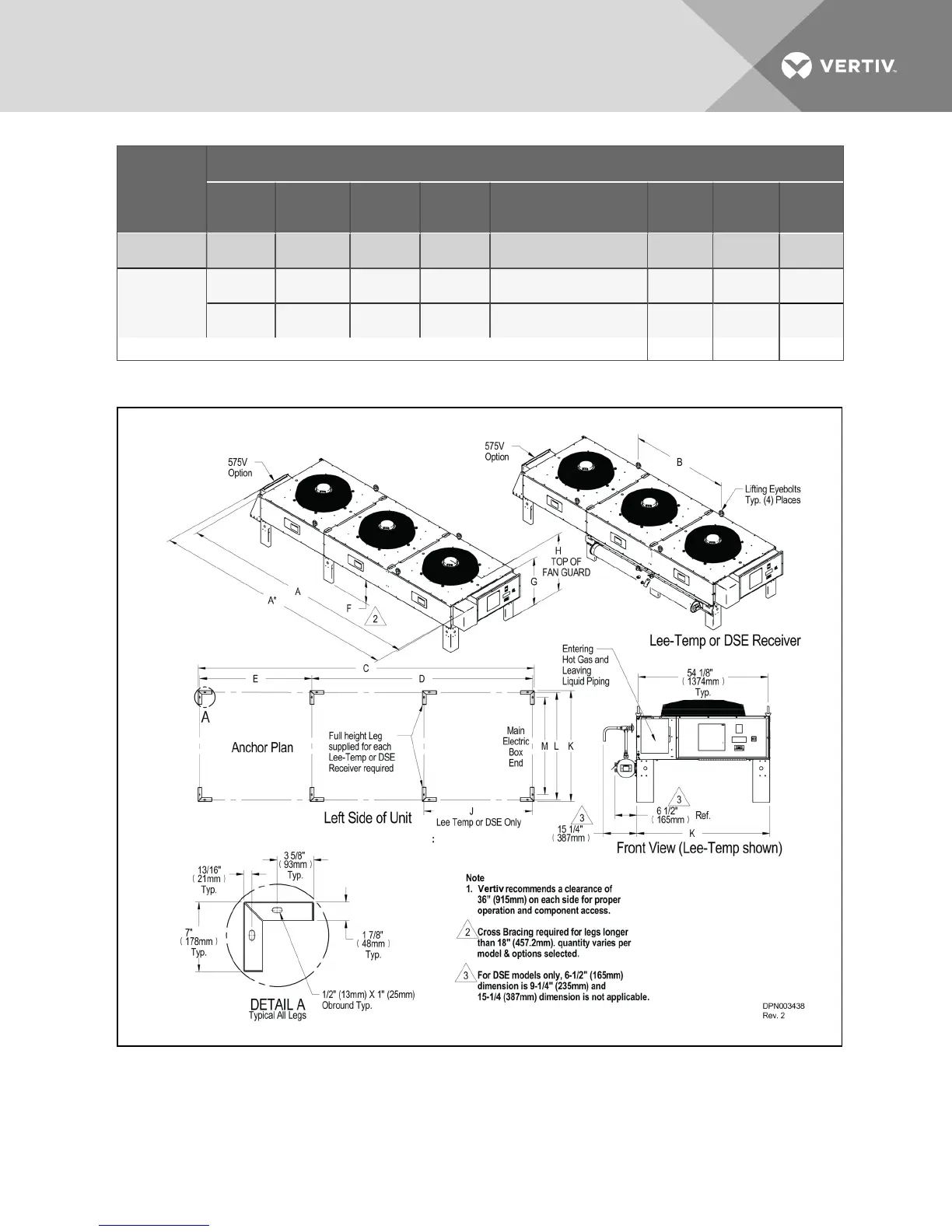 Figure 2.3 Condenser planning dimensional data—MCL165