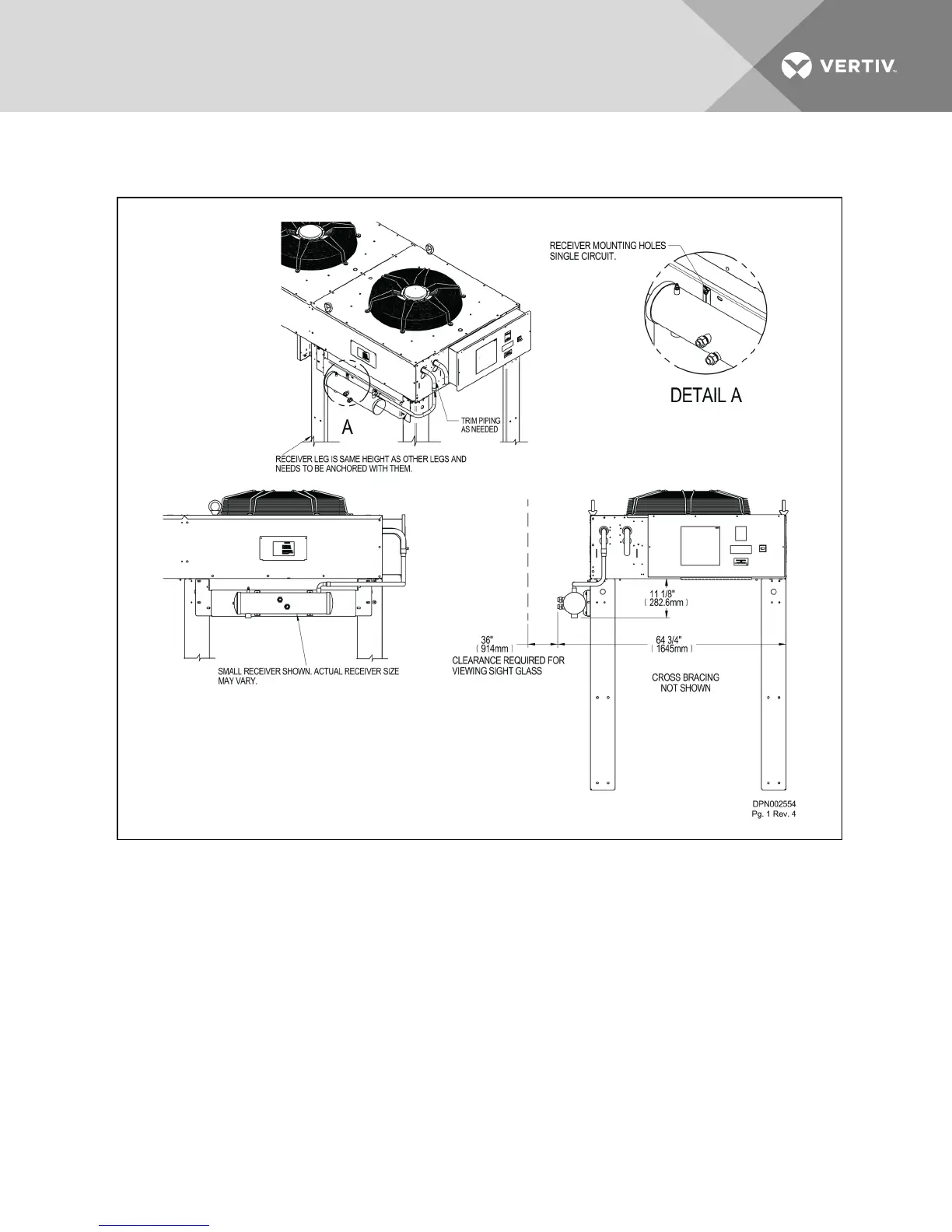 Figure 2.5 Liebert DSE receiver mounting—MCL165 and MCL220, single-circuit condenser,