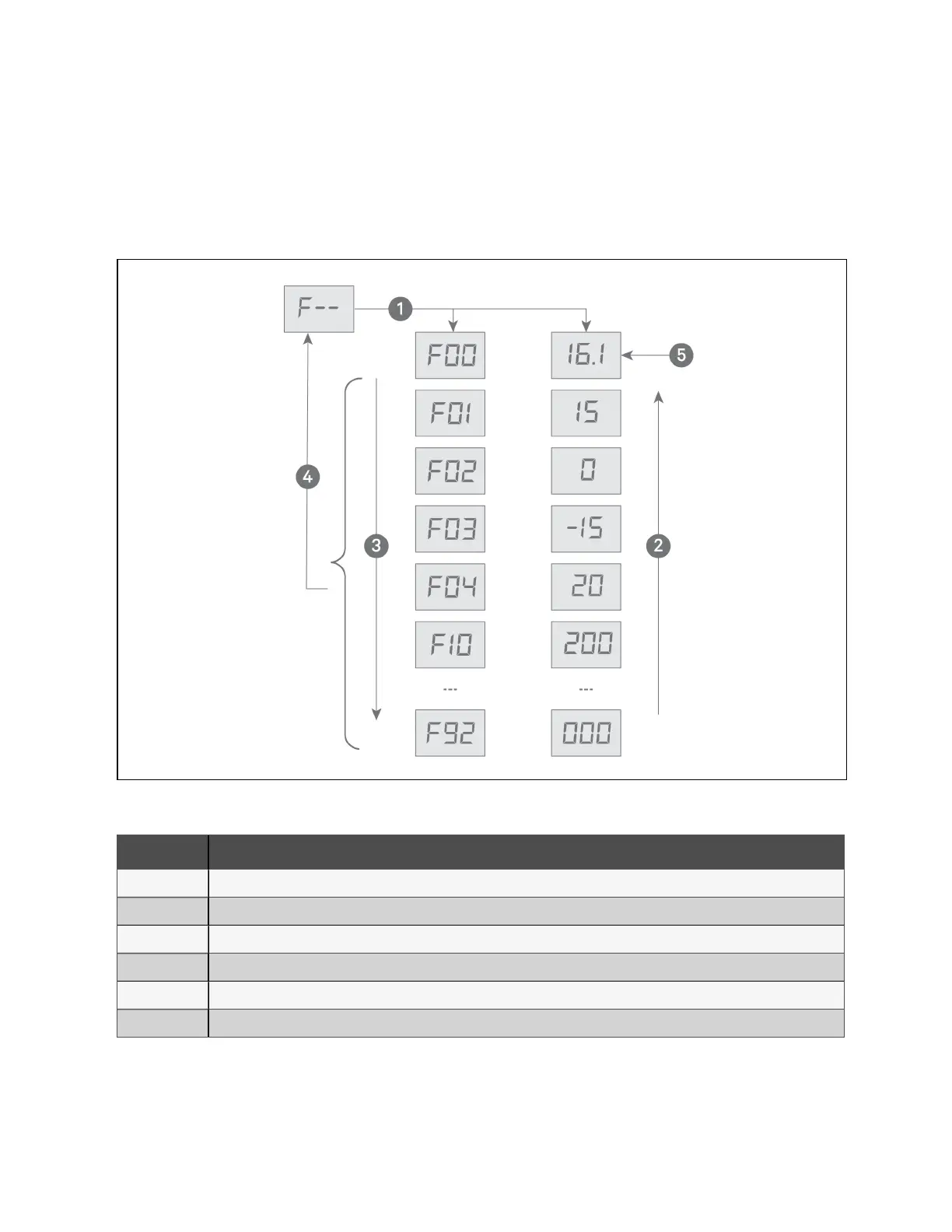 2 Pressing up arrow, cycles up through the menu items/readings.
