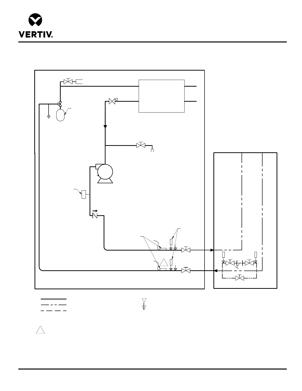 2. Field to install strainer in field secondary (XDM ) return line to Cooling Modules . Vertiv recommends a bypass piping arrangement to allow for cleaning the strainer