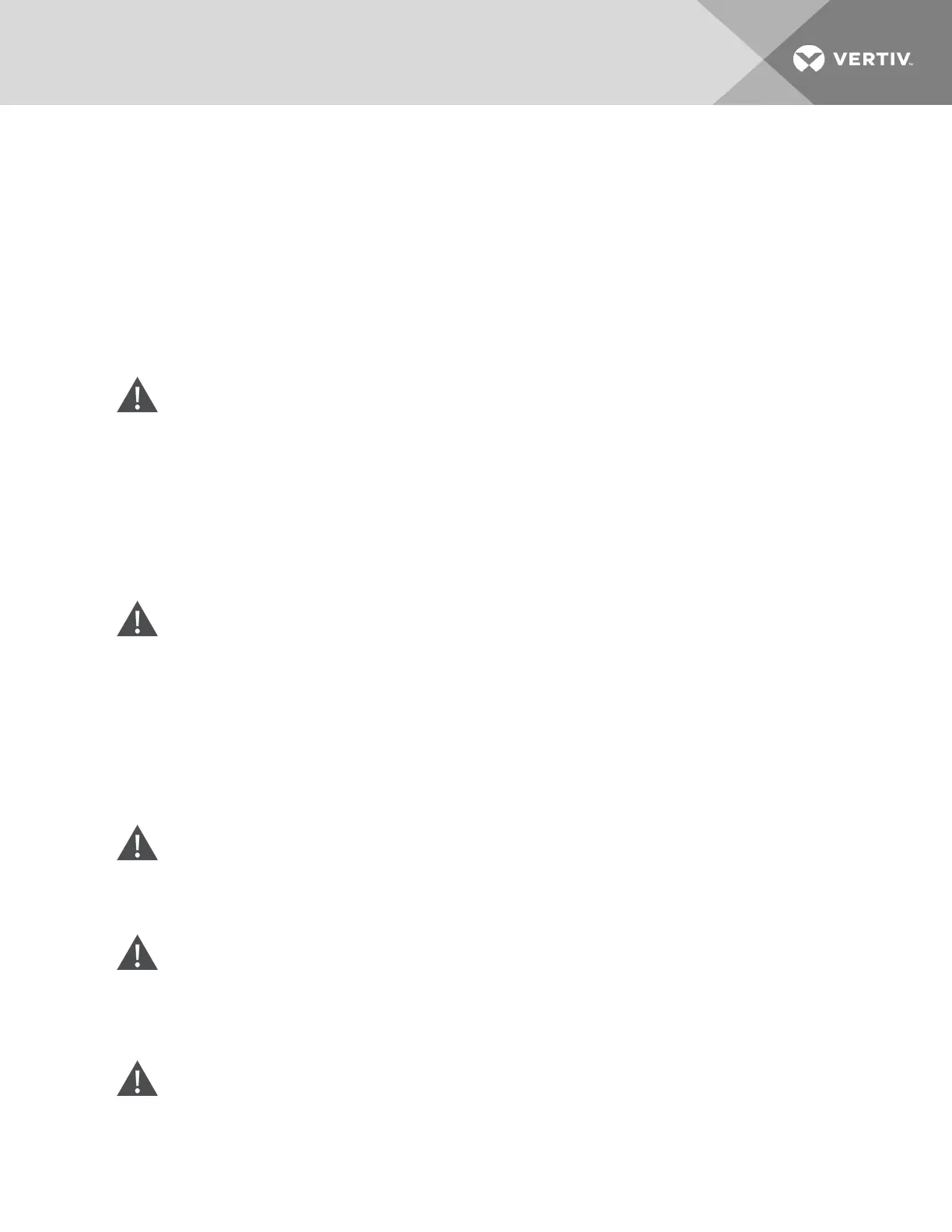 Vertiv Liebert Mini-Mate MT036 - Important Safety Instructions; Arc Flash and Electric Shock Hazard; Risk of Over-pressurization of the Refrigeration System; Risk of Contact with High-Speed, Rotating Fan Impeller Blades
