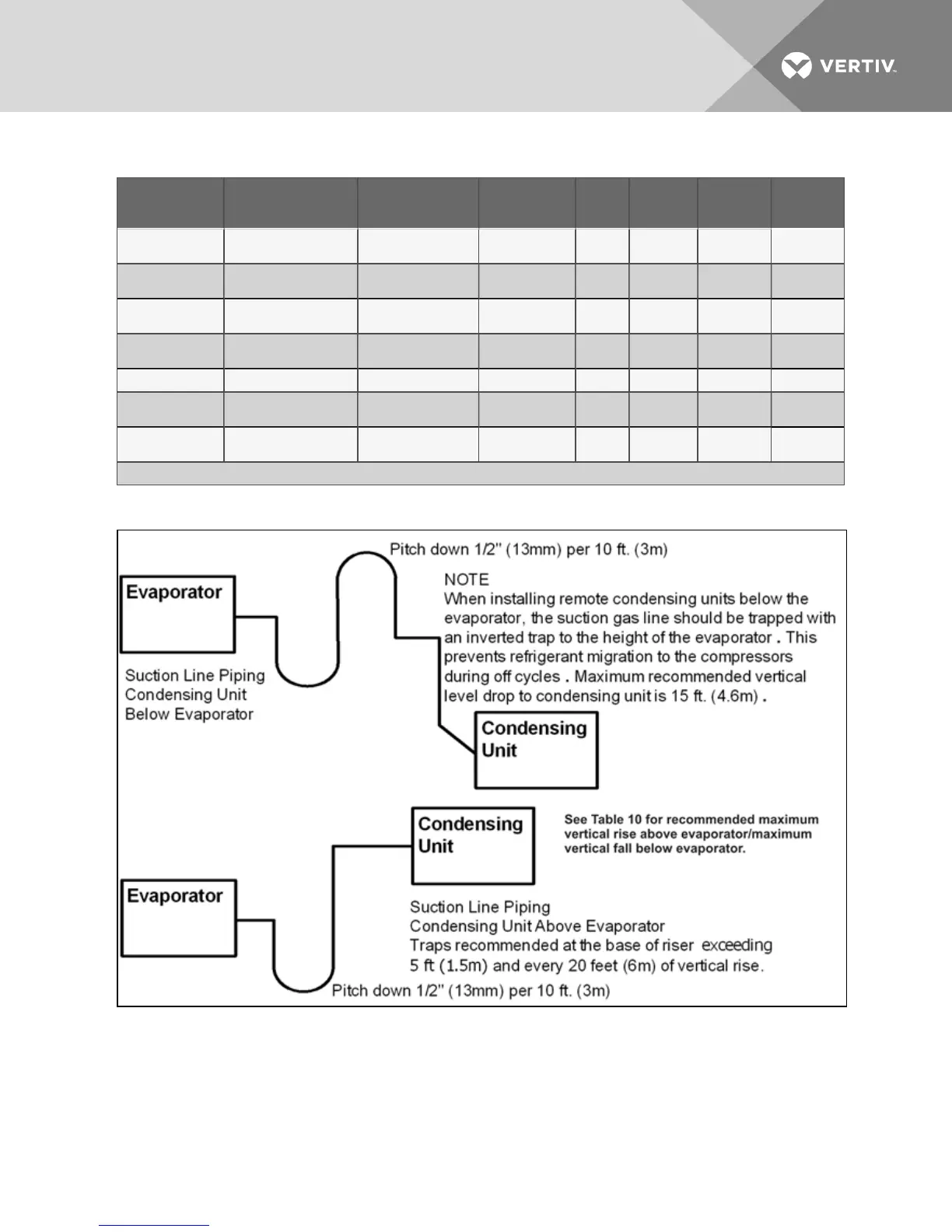 Refrigerant trap = Four times equivalent length of pipe per this table