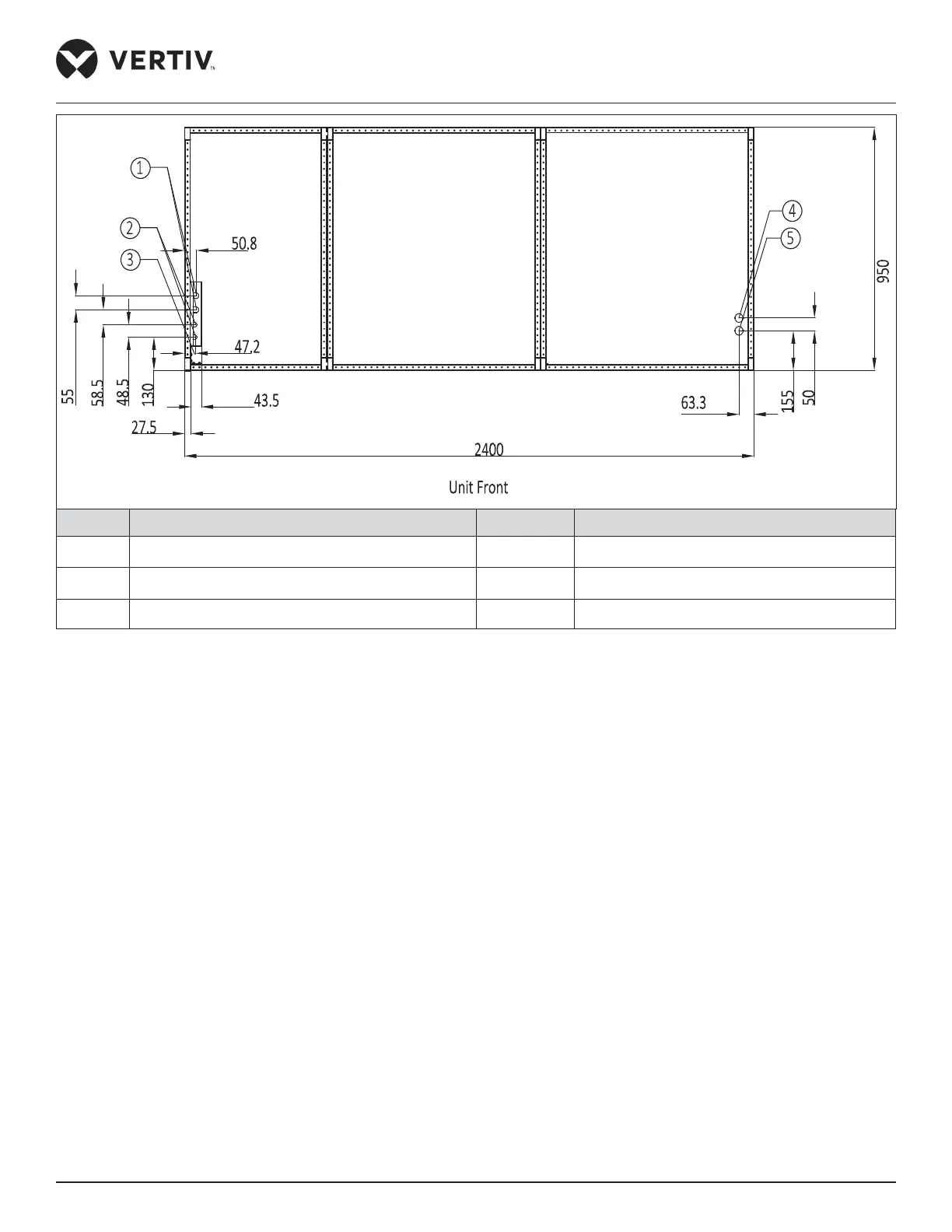 Figure 2-14 The Position of Pipe Bottom Outlet of Dual Cabinet Unit (unit: mm)