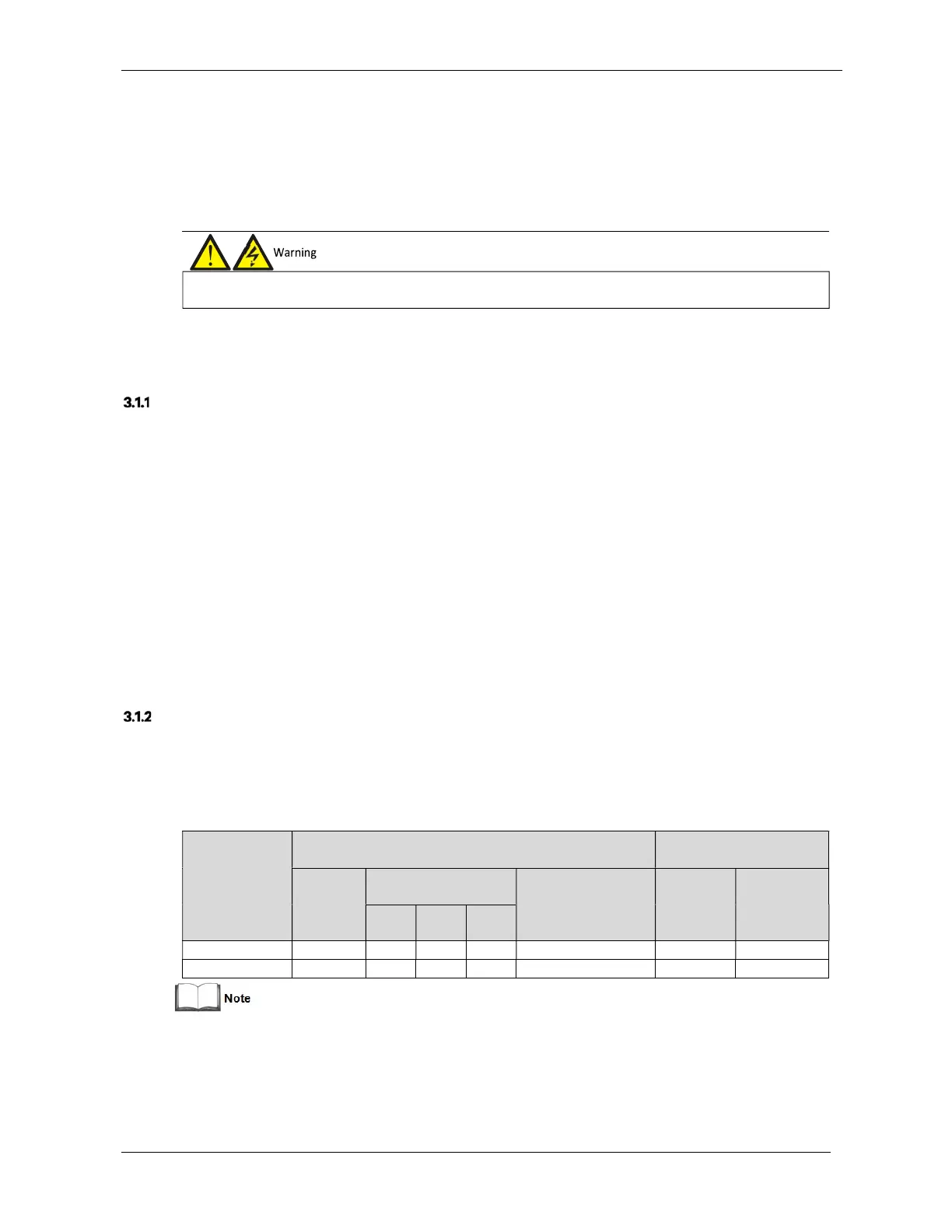The power cable must be selected according to the current and voltage values indicated in Table 3-1, as well as the