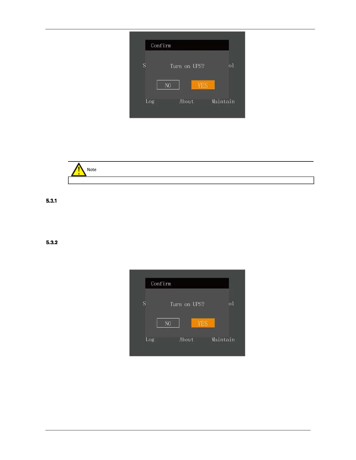 Figure 5-7 will appear, select 'YES' to switch the UPS on.