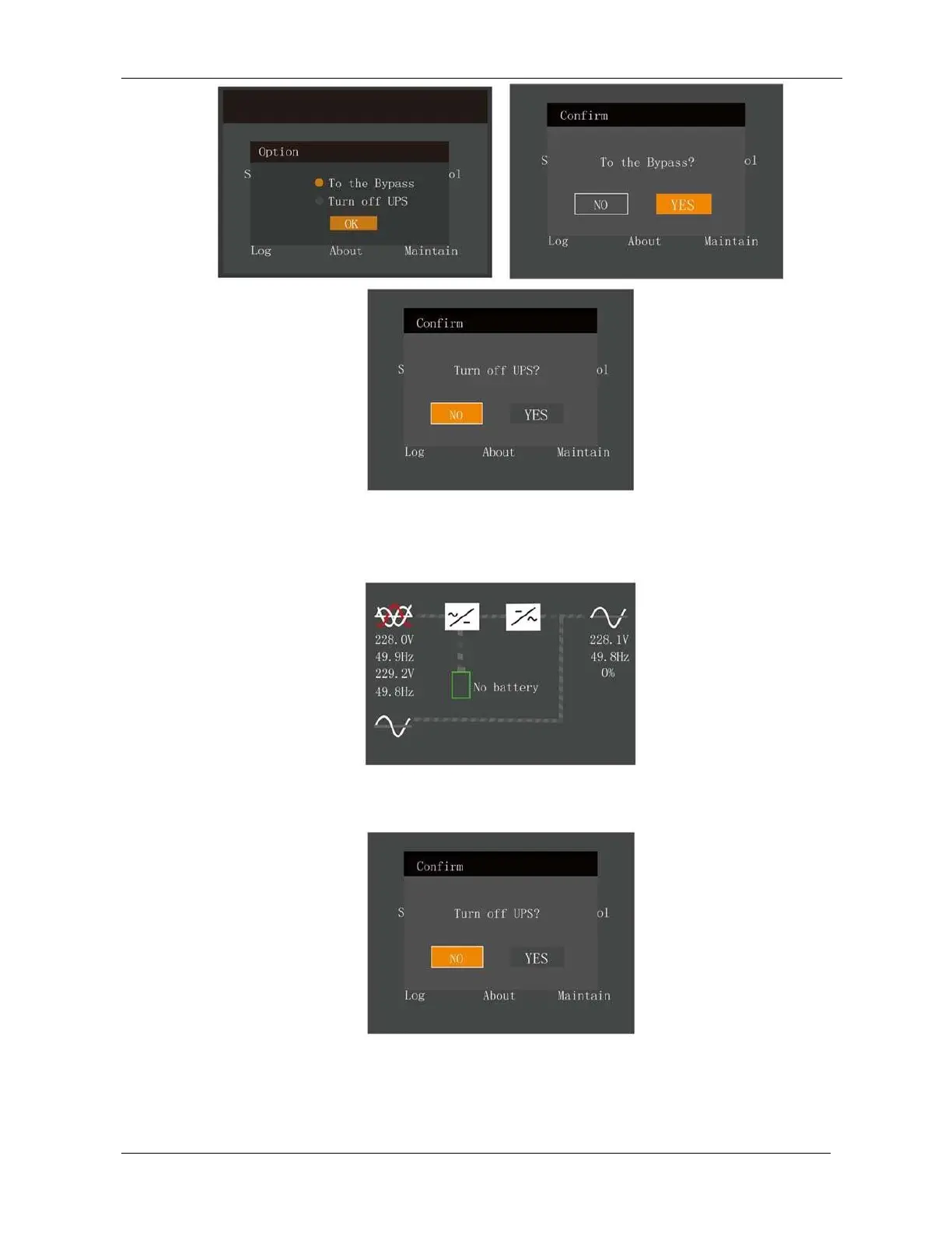 If ECO mode is enabled, the interface shown in Figure 5-12 will appear. Select 'YES' to shut down the UPS output.