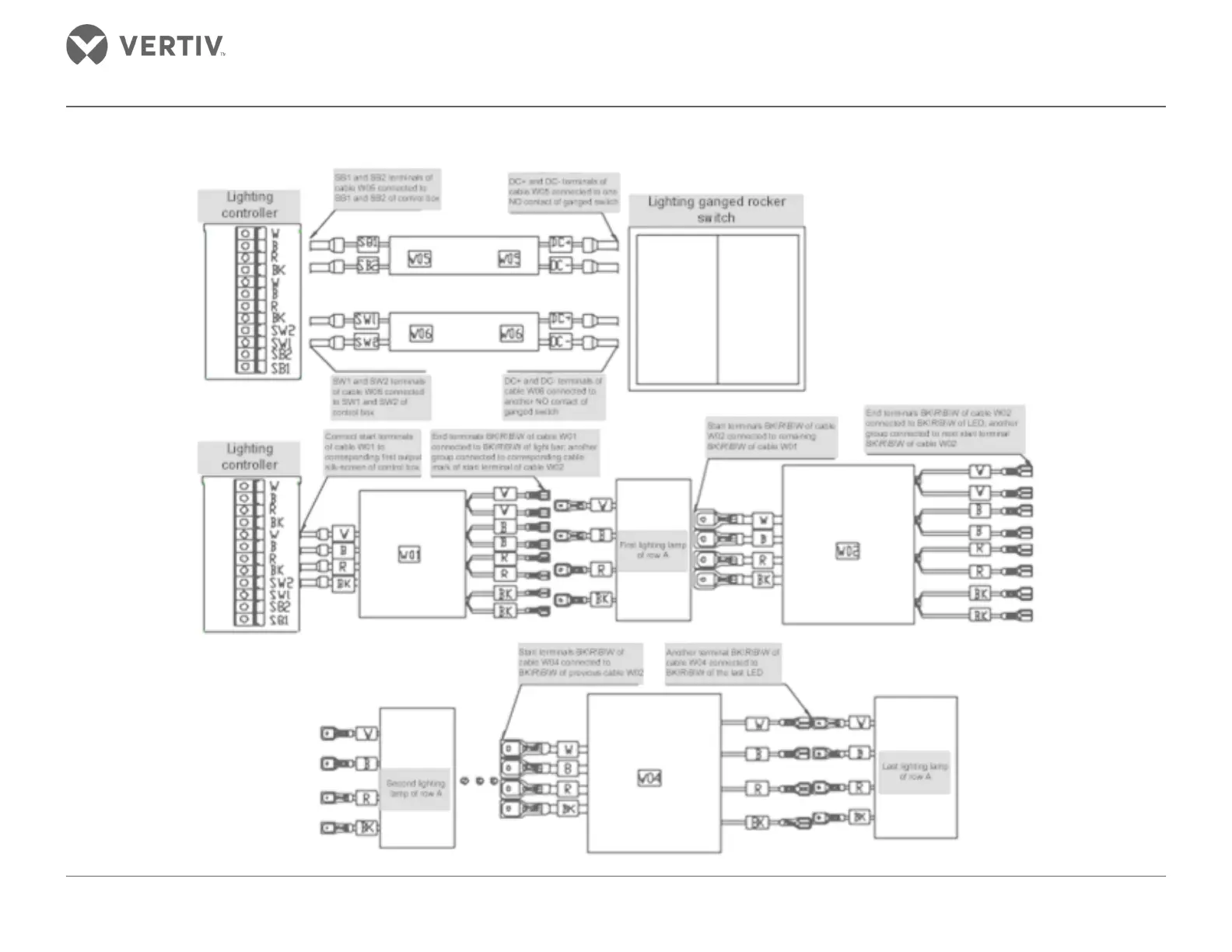 Vertiv Liebert SmartAisle2 - Appendix I: Lighting Connector; Lighting Wiring Diagrams