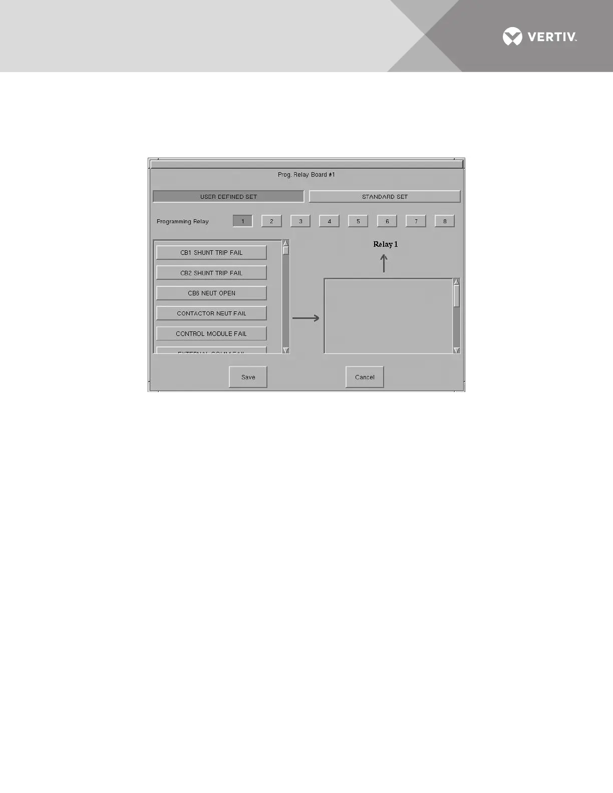 b. Select an event you want associated with the relay. That fault is placed in the Relay column.
