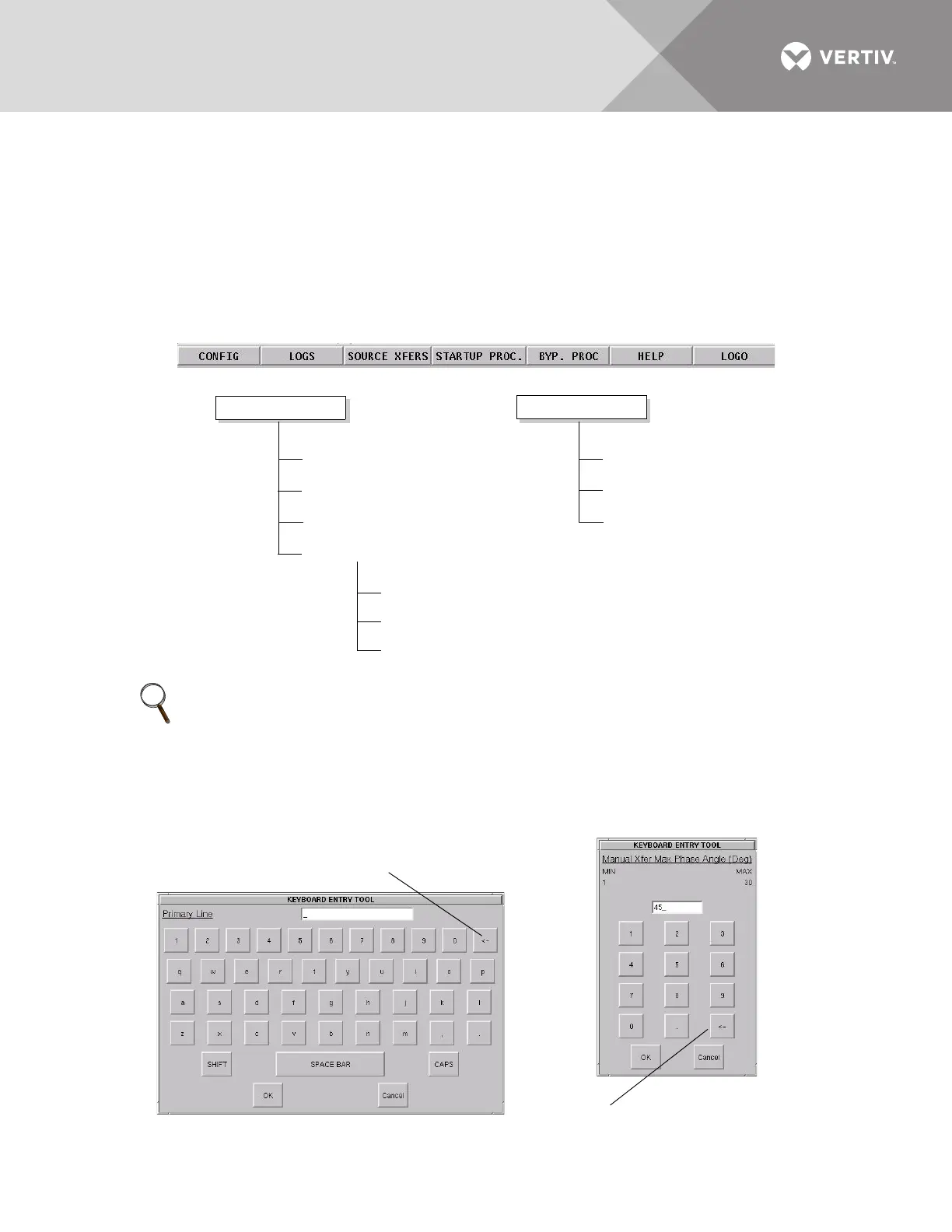 Some menu choices display a keyboard or keypad on the touchscreen. Enter data on the touchscreen.
