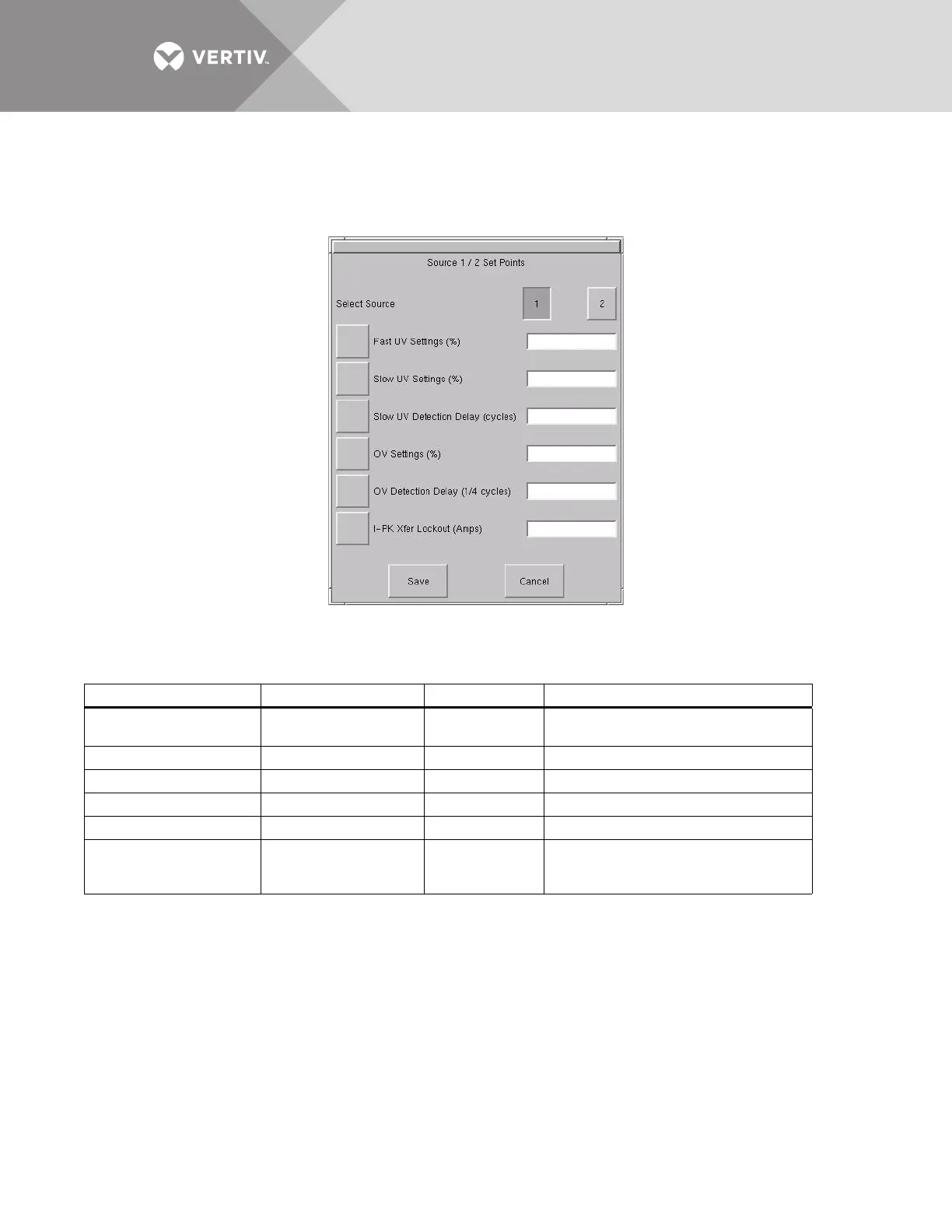 To configure the setpoints for each source: