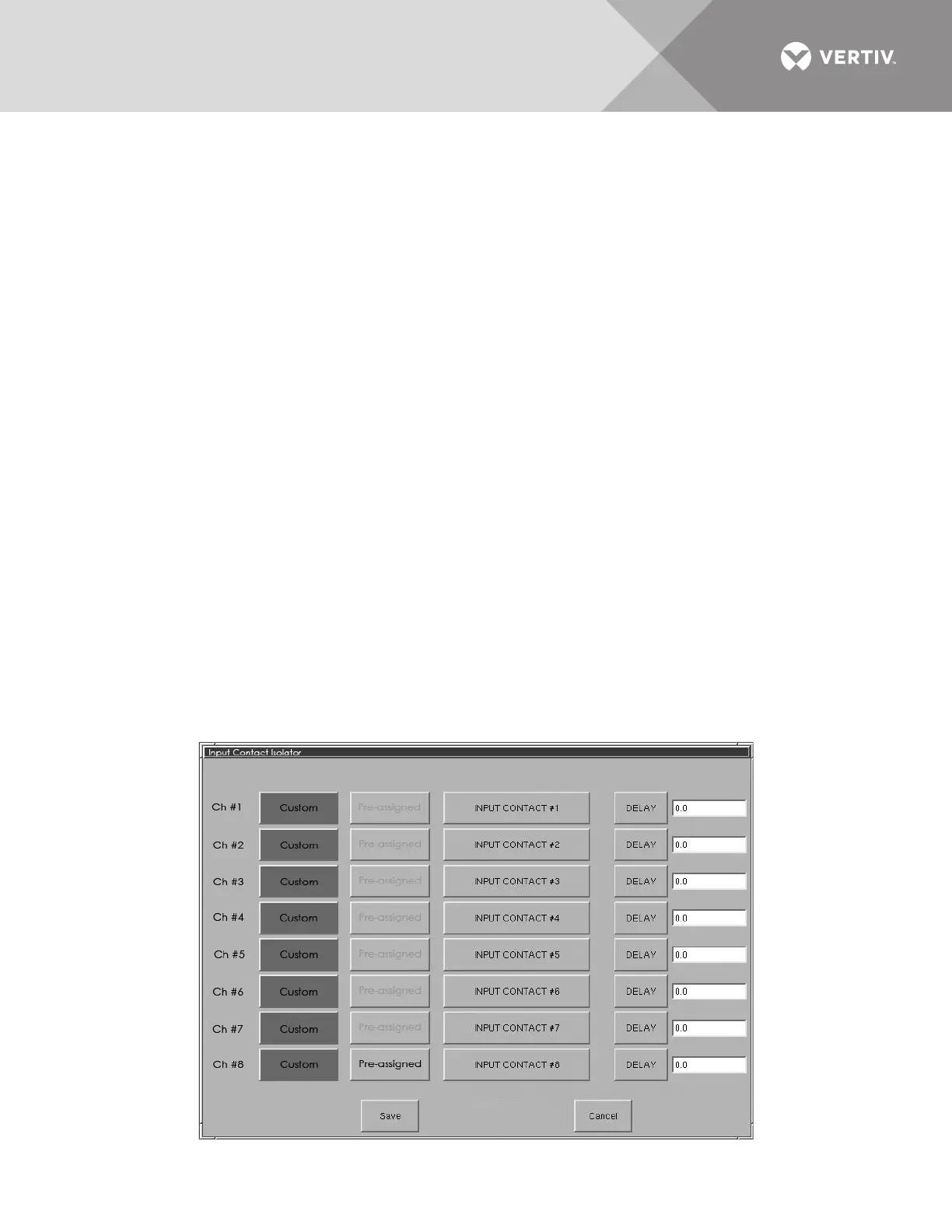 The Input Contact Isolator options are configured through the Input Contact Isolator dialog box, which is