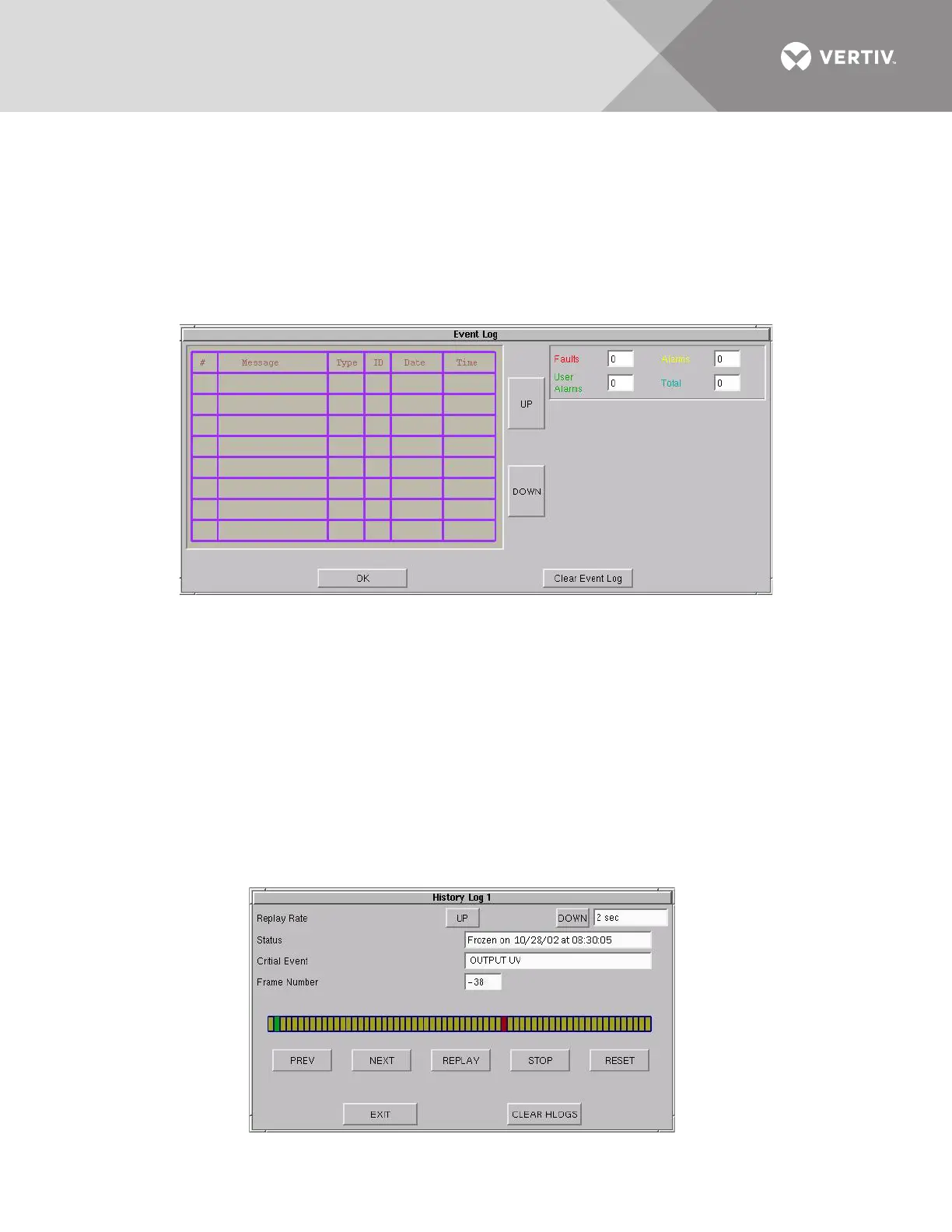 Two types of logs are kept by the Liebert STS2/PDU: Event Log and History Log.