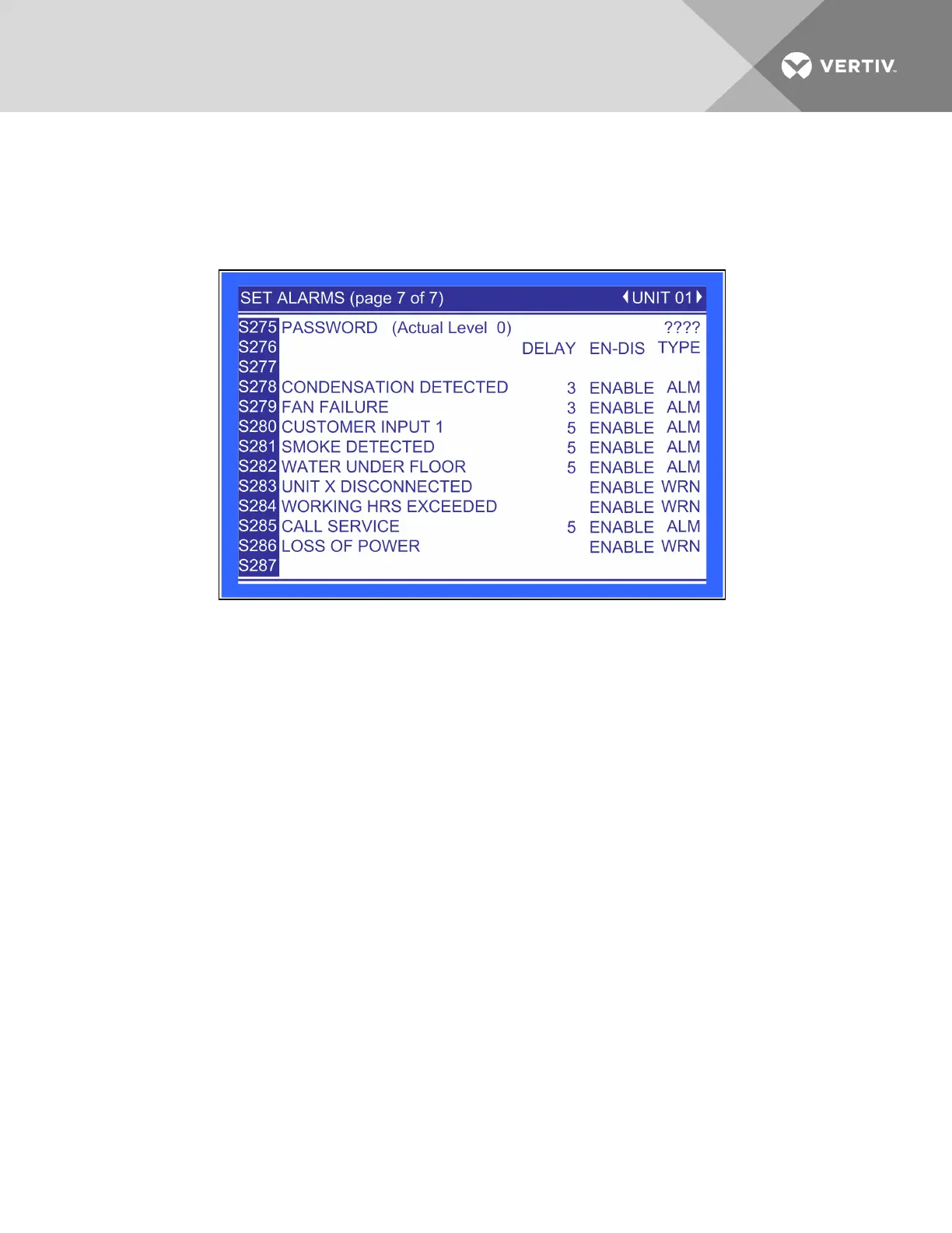 Liebert XD cooling module. Sets how the event is reported: as an alarm, a warning or a message. Specifies