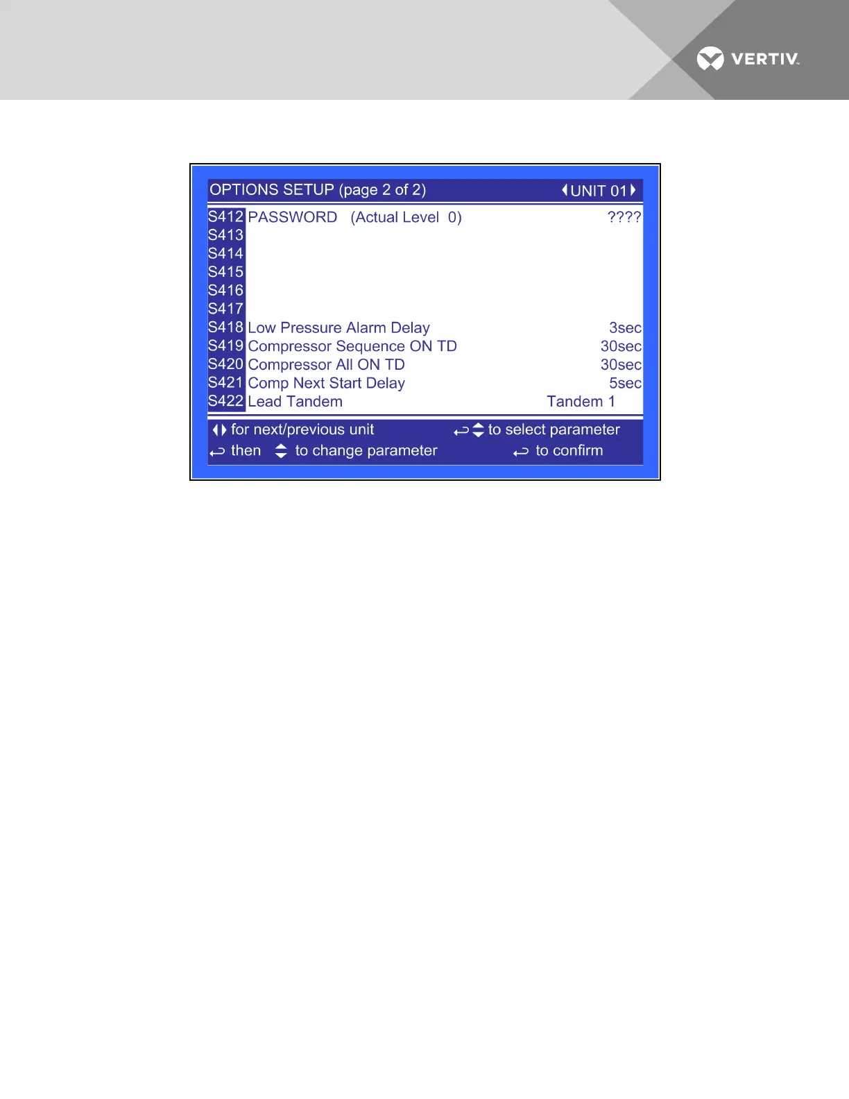 Compressor Sequence ON TD—Sets the time delay between each compressor’s activation during startup.