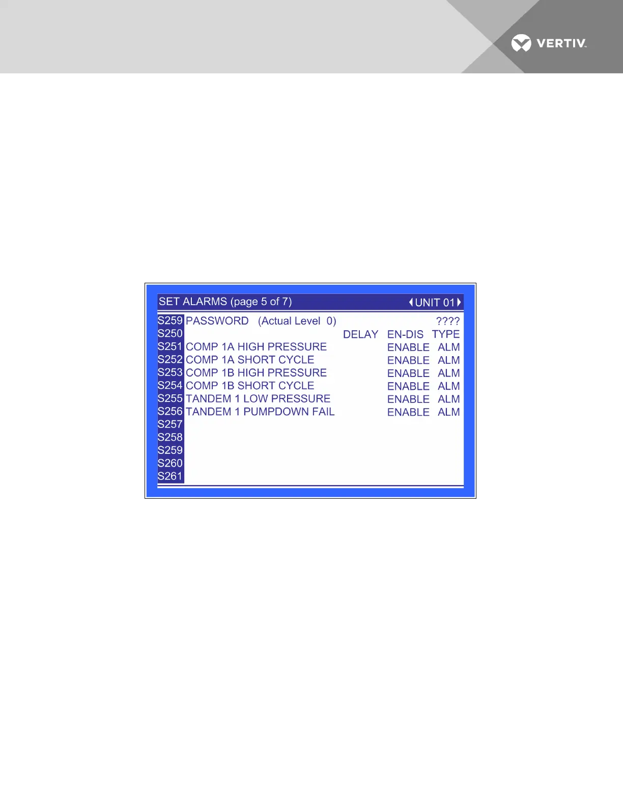 controls senses a high-pressure signal from Compressor 1 A. Sets how the event is reported: as an alarm, a