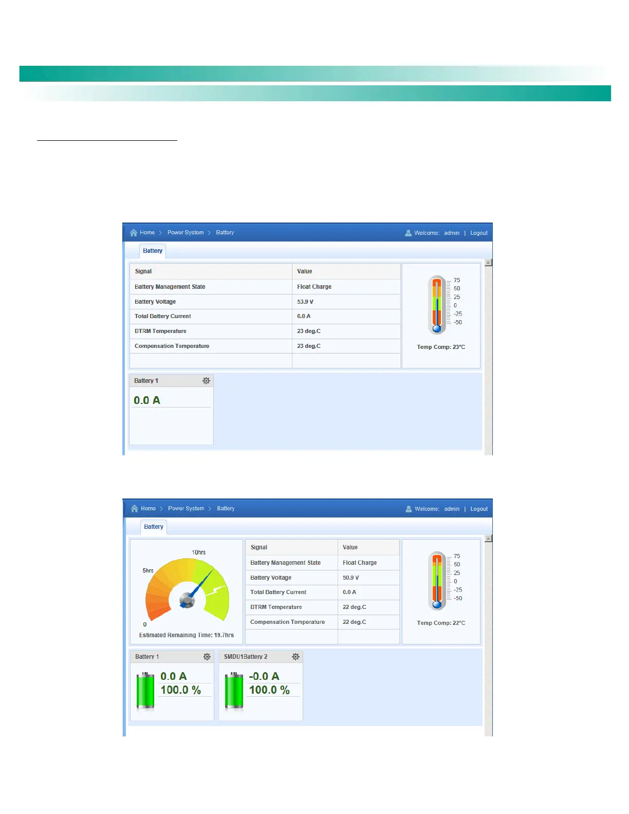Battery Device Group status page displays battery status values such as "Battery Management State" and "Battery Temp". The actual