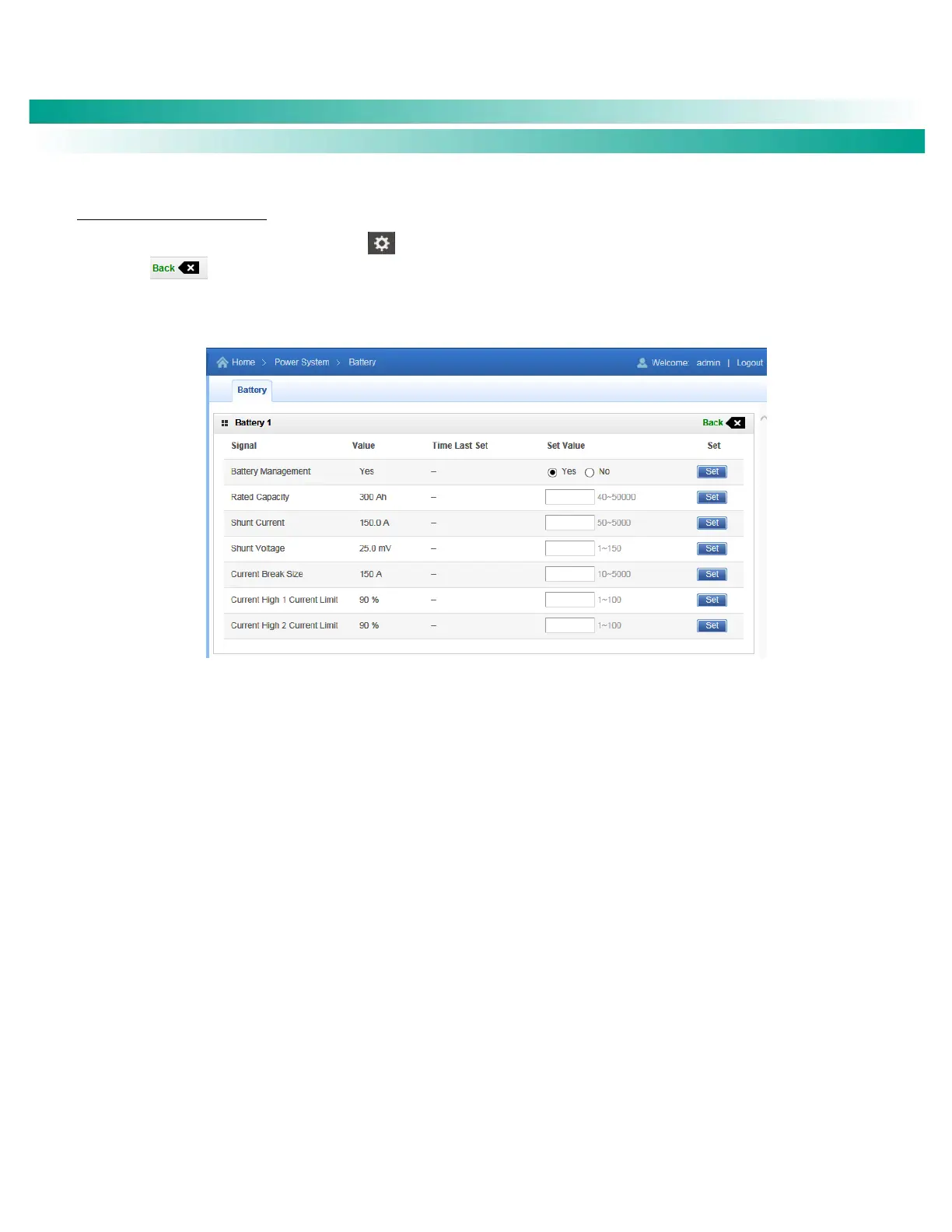 Figure 51. Individual Battery Settings Page (Battery #)