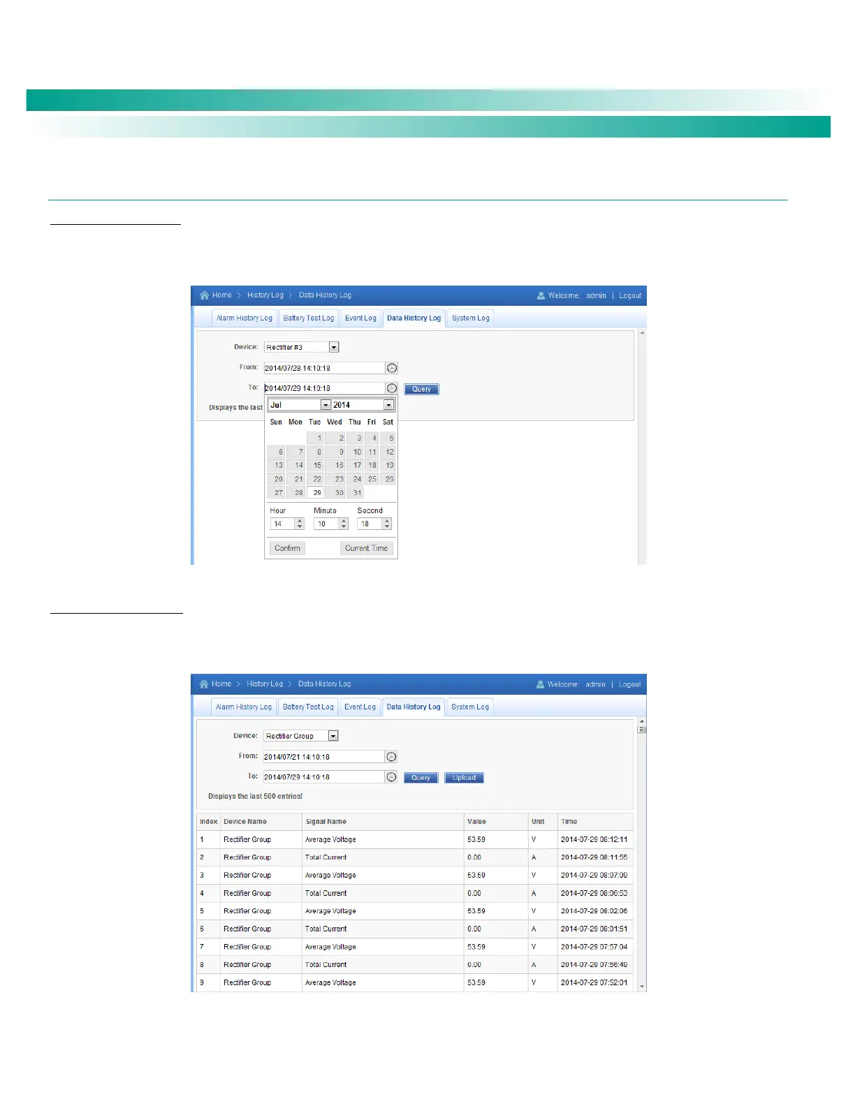 Click “Query” to query for Date History within selected time slot. The Web page displays the last 500 entries.