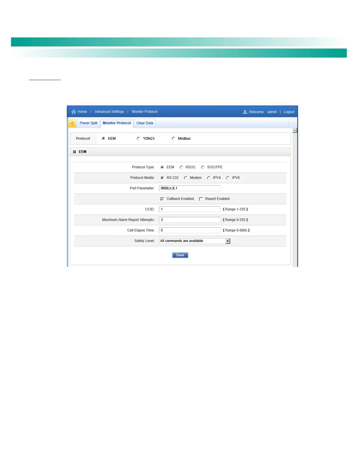 Protocol Type: Select EEM, RSOC, or SOC/TPE per site requirements.