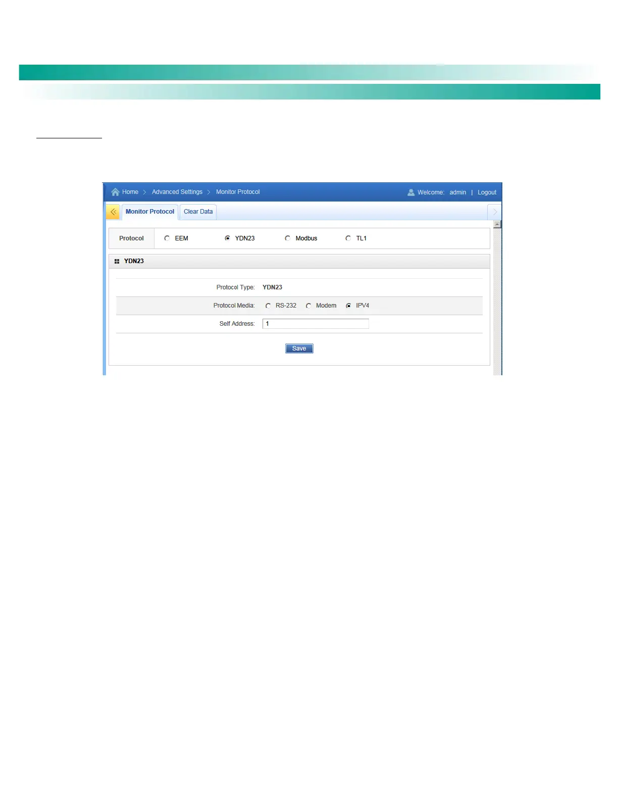 Protocol Media: Select RS-232, Modem, or IPV4 per site requirements.