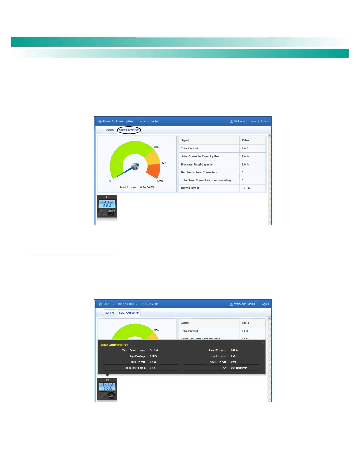 individual solar converter icon to display its status such as "Input Current", "Output Power", etc.