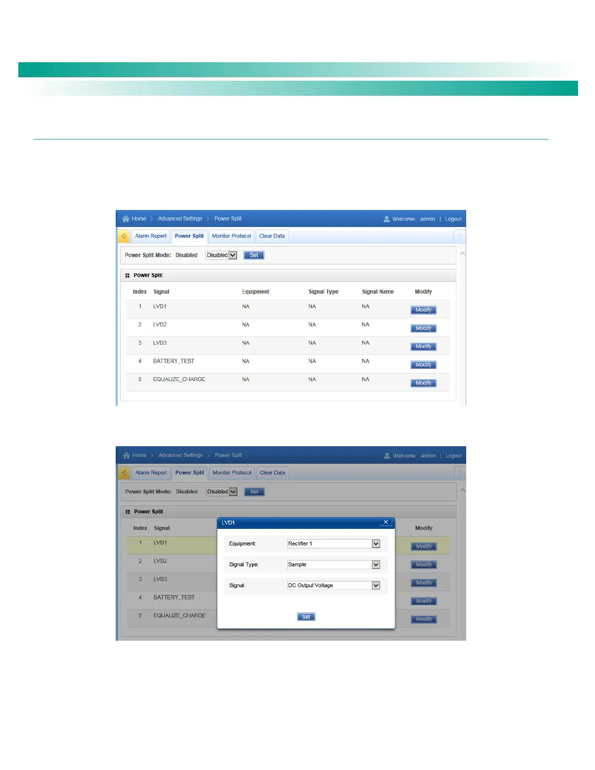 Figure 102. Power Split Settings
