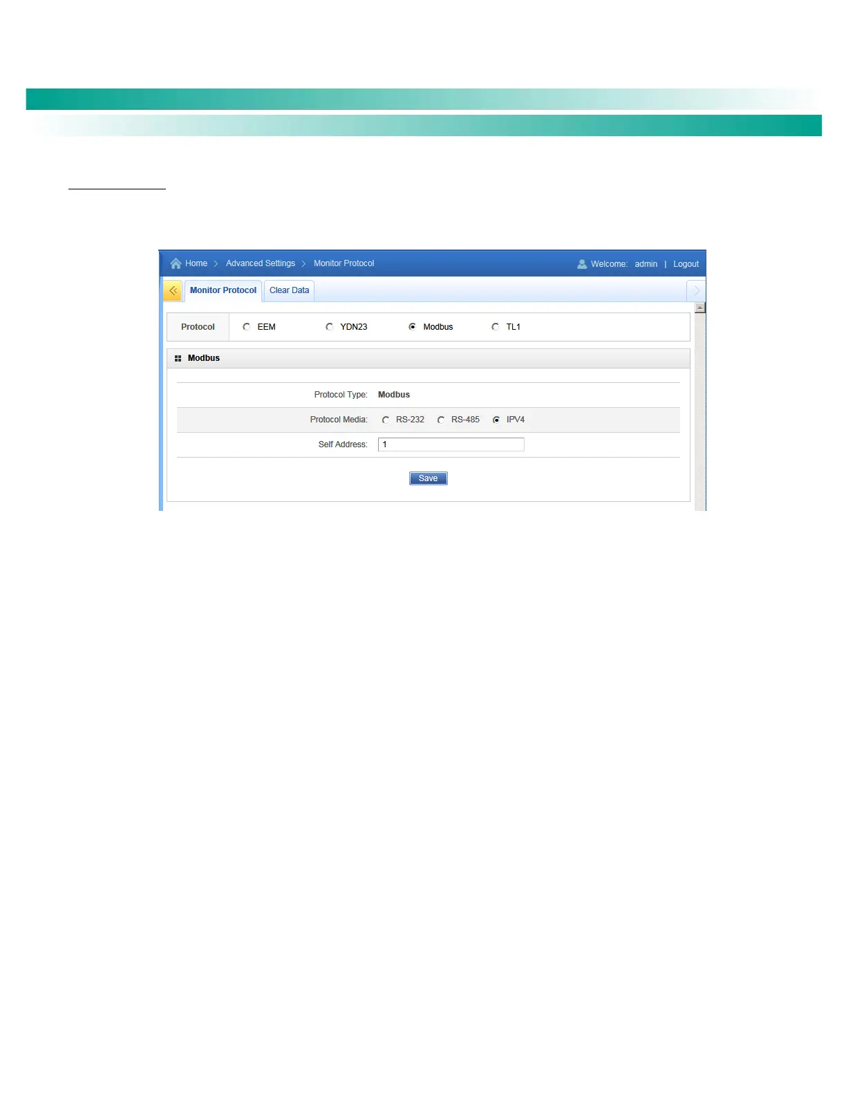 Protocol Media: Select RS-232, Modem, or IPV4 per site requirements.