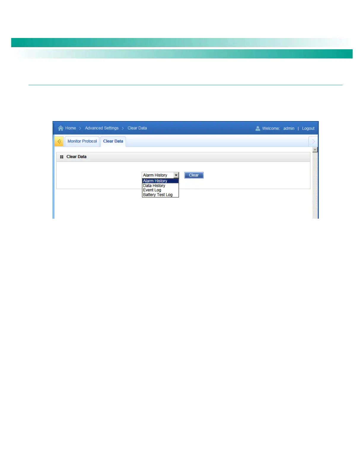 Select the data log to be cleared from those listed in the drop-down list box. Click on the “Clear” button to clear the corresponding data.