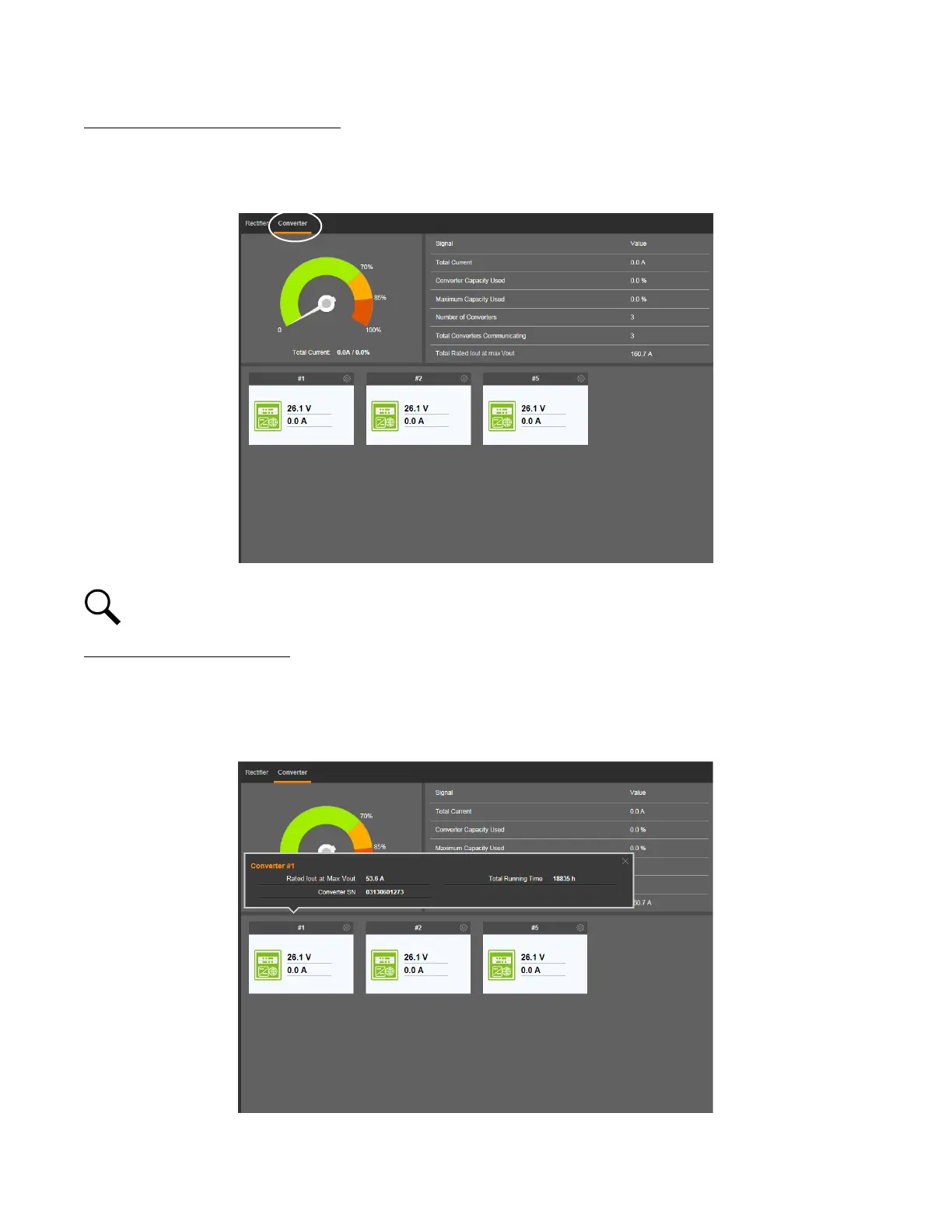 “Converter Capacity Used” and “Maximum Capacity Used” are based on 26 VDC.