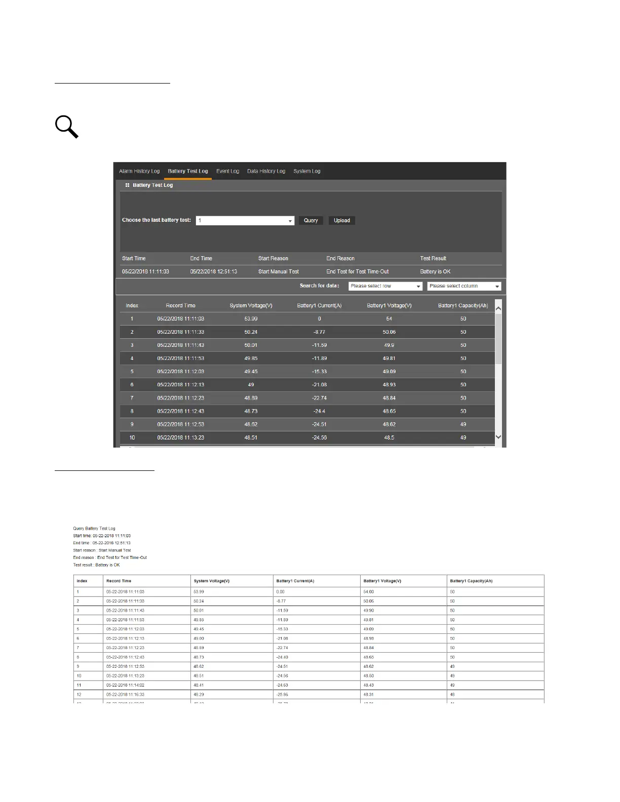 Click “Query” to query the selected battery test. The Web page displays up to ten (10) battery tests.
