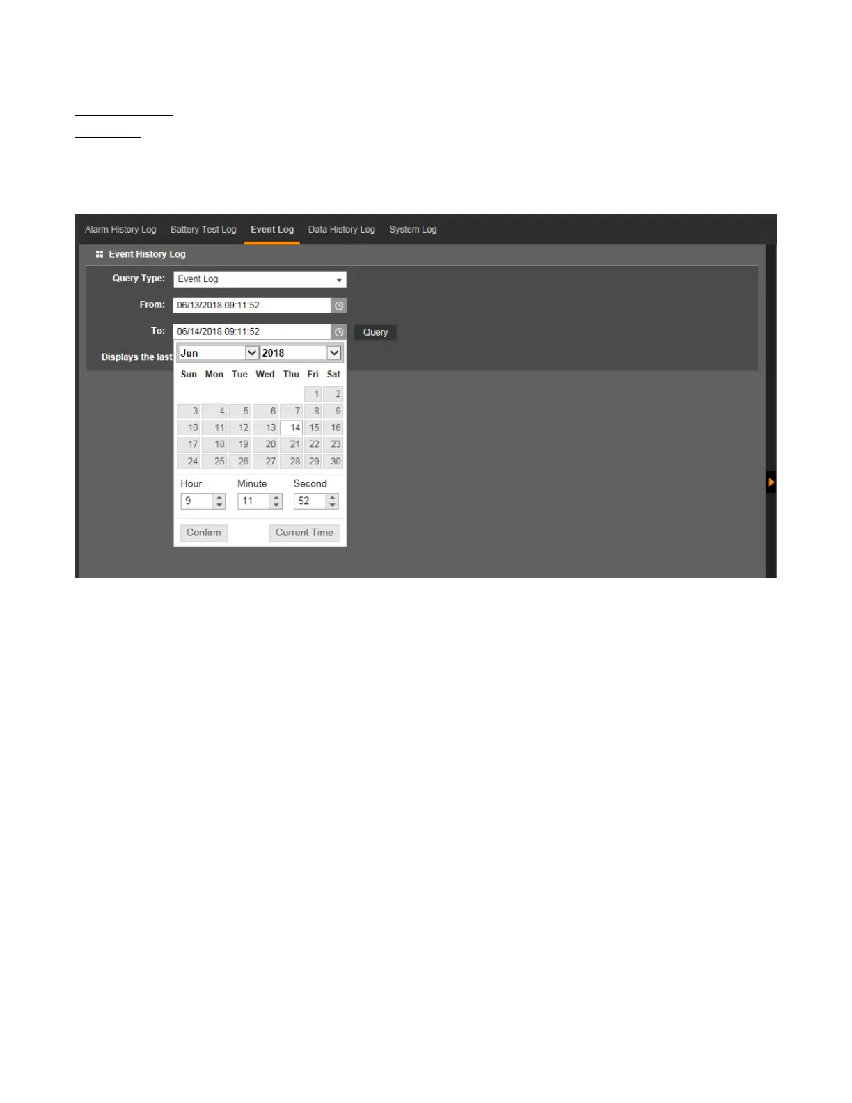 Figure 5.45 Event Log Time Selection