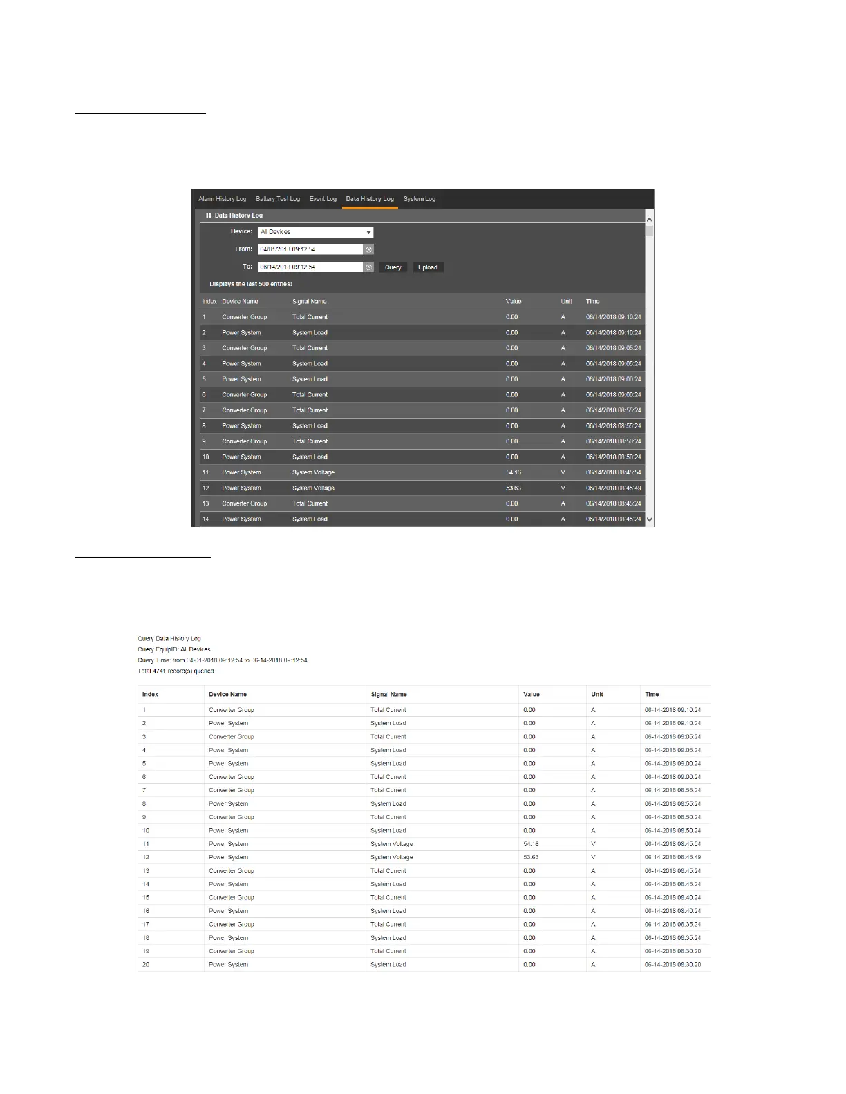 Click “Query” to query for Date History within selected time slot. The Web page displays the last 500 entries.