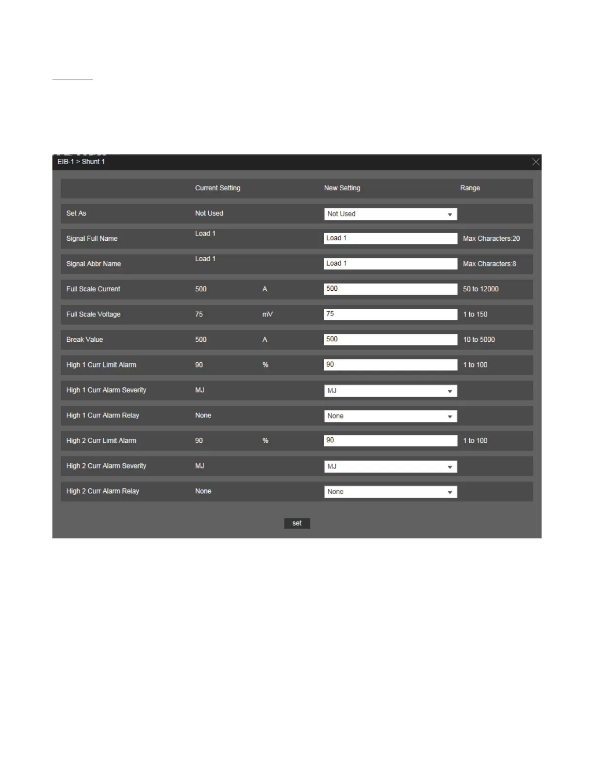 1. To modify the shunt parameters, click on the “Modify/View” button for that shunt.