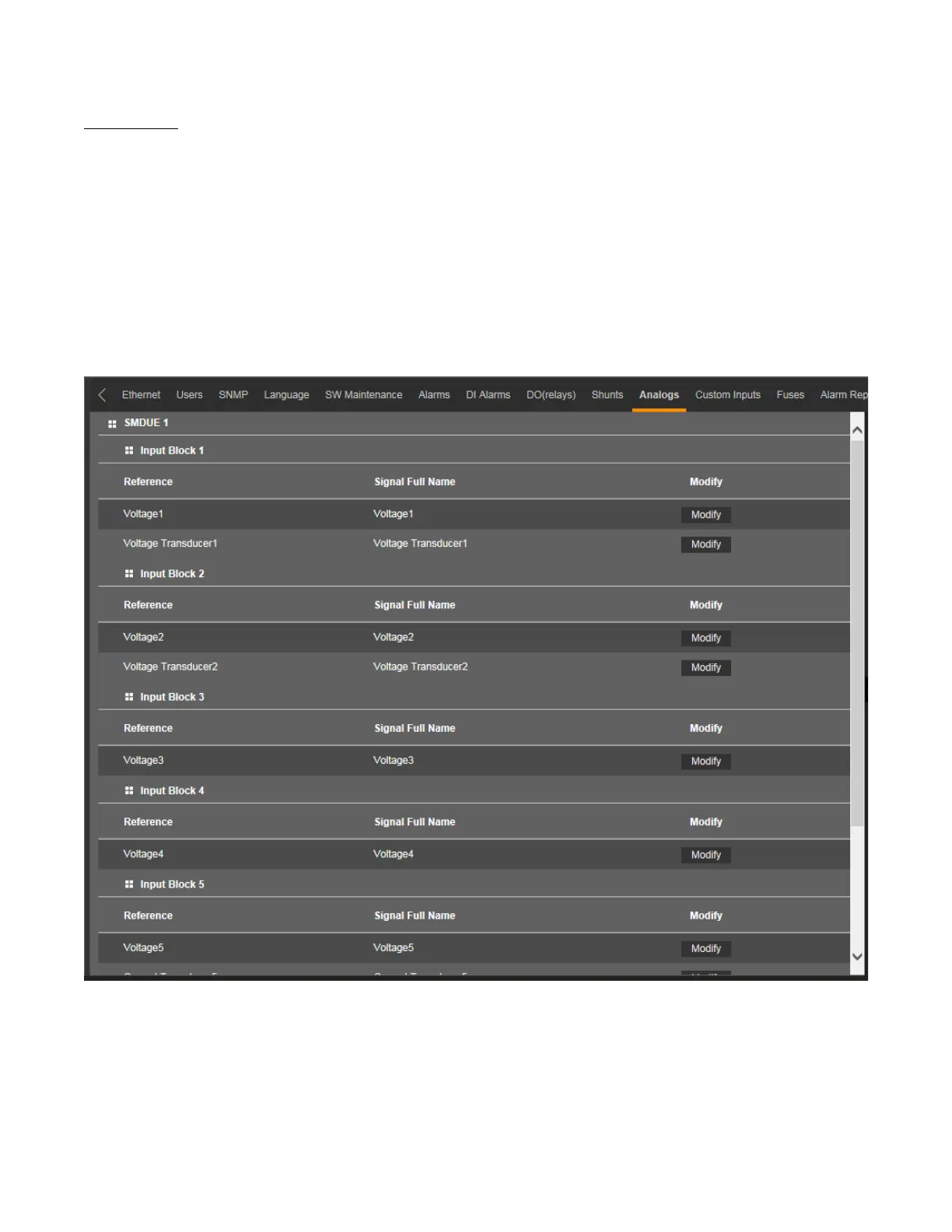 • Allows you to change the signal full name (name displayed in the Web Interface menus) of any enabled voltage input and
