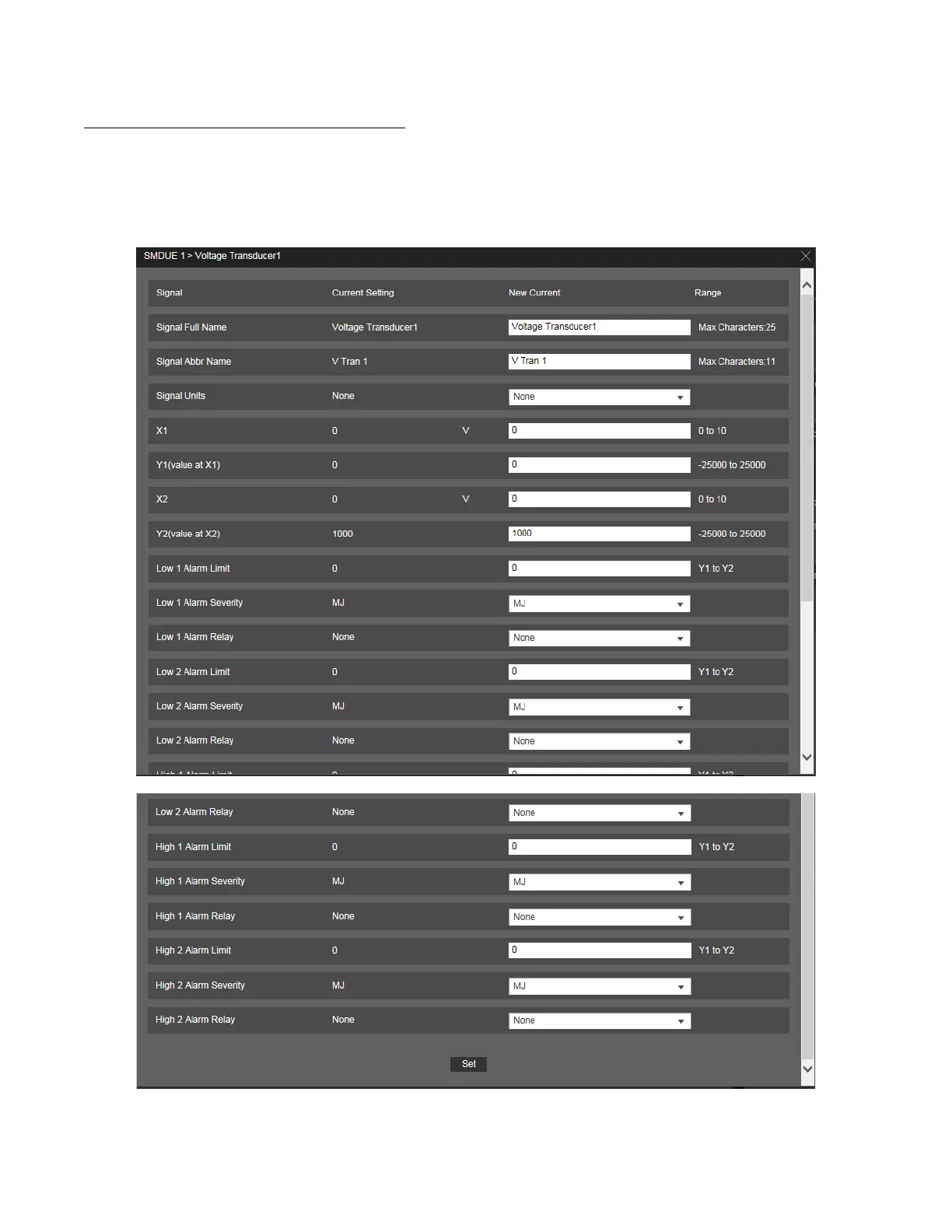 1. To modify the parameters of an analog input set for voltage transducer, click on the “Modify” button for that analog input.