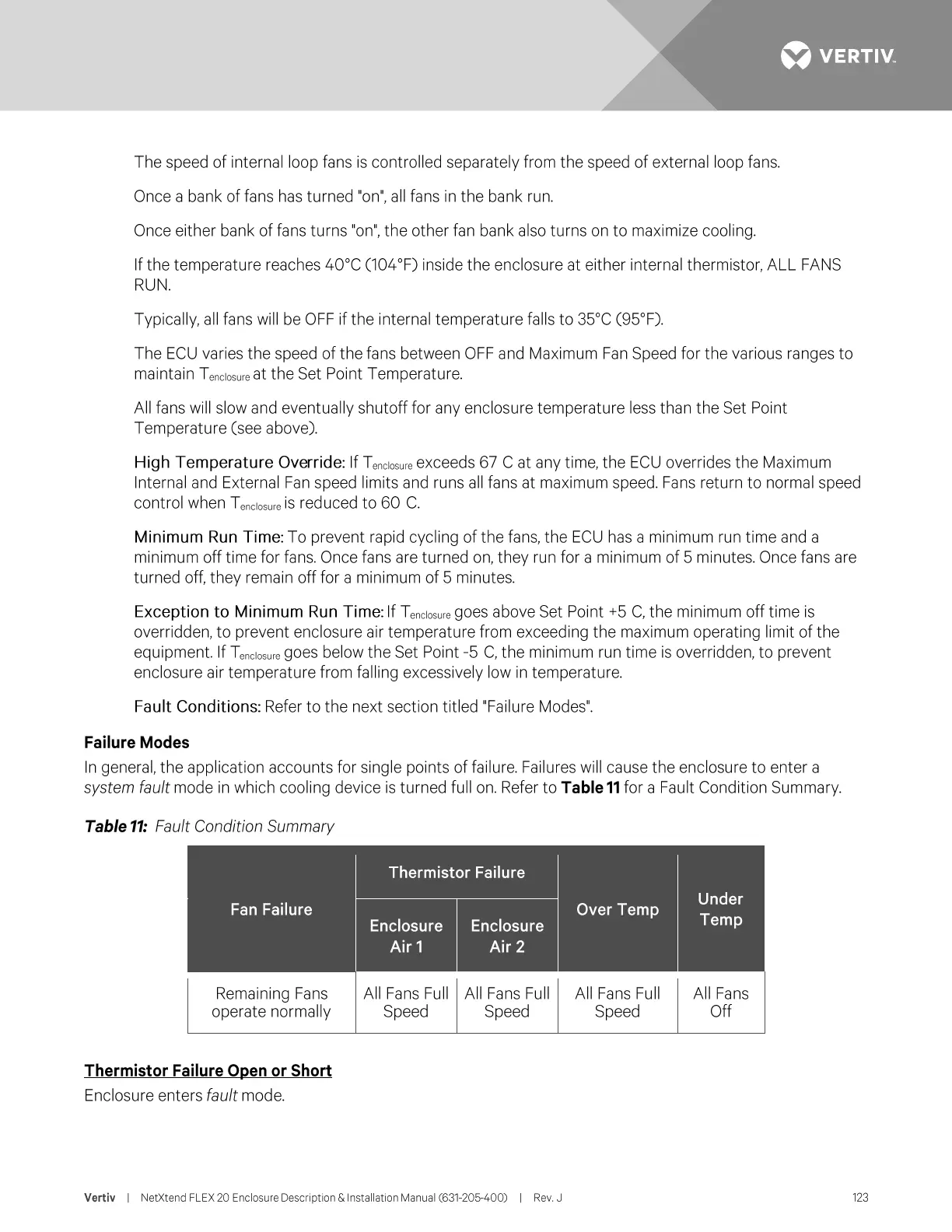 Vertiv NetXtend Flex 20 - Failure Modes; Thermistor Failure Open or Short