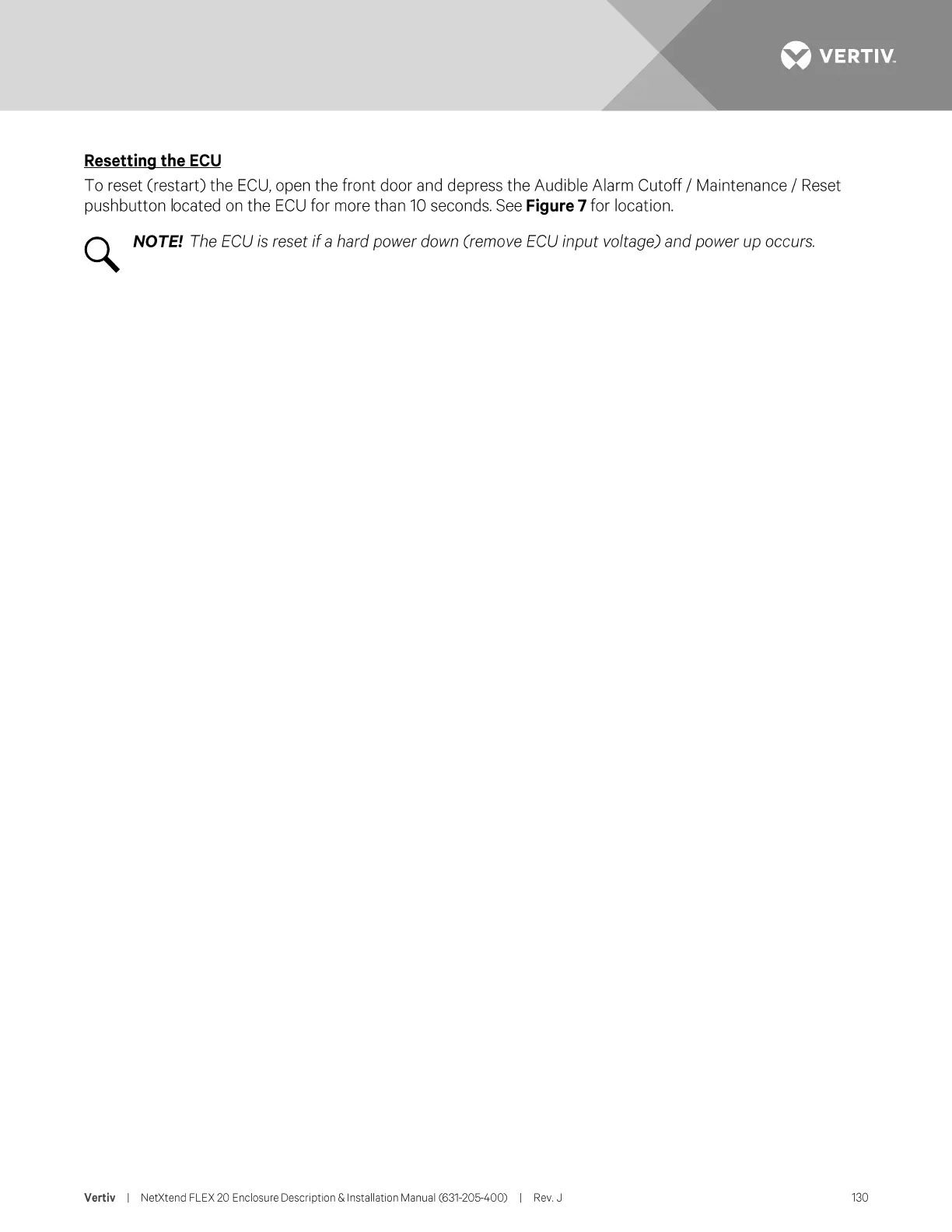 Vertiv NetXtend Flex 20 - Resetting the ECU