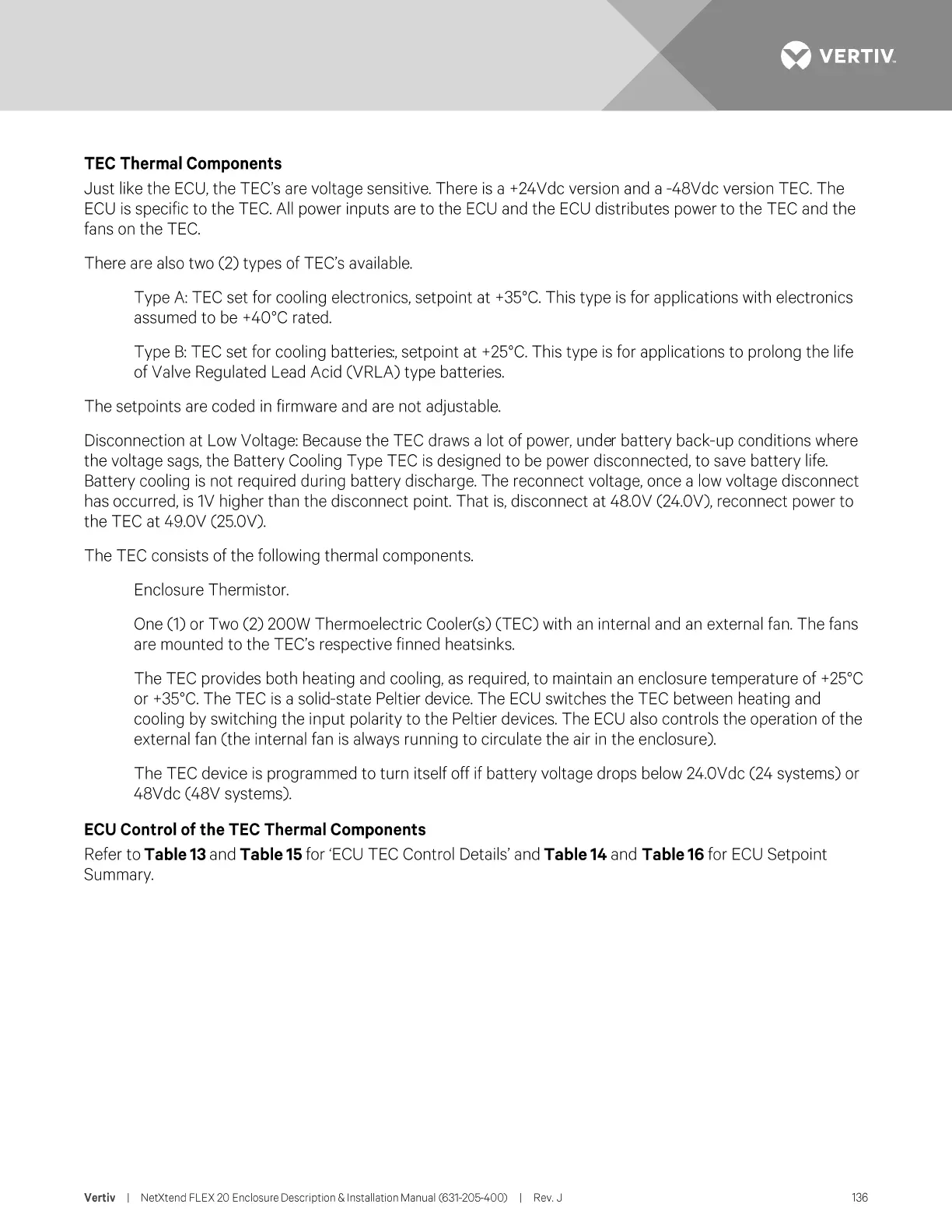 Vertiv NetXtend Flex 20 - TEC Thermal Components; ECU Control of the TEC Thermal Components