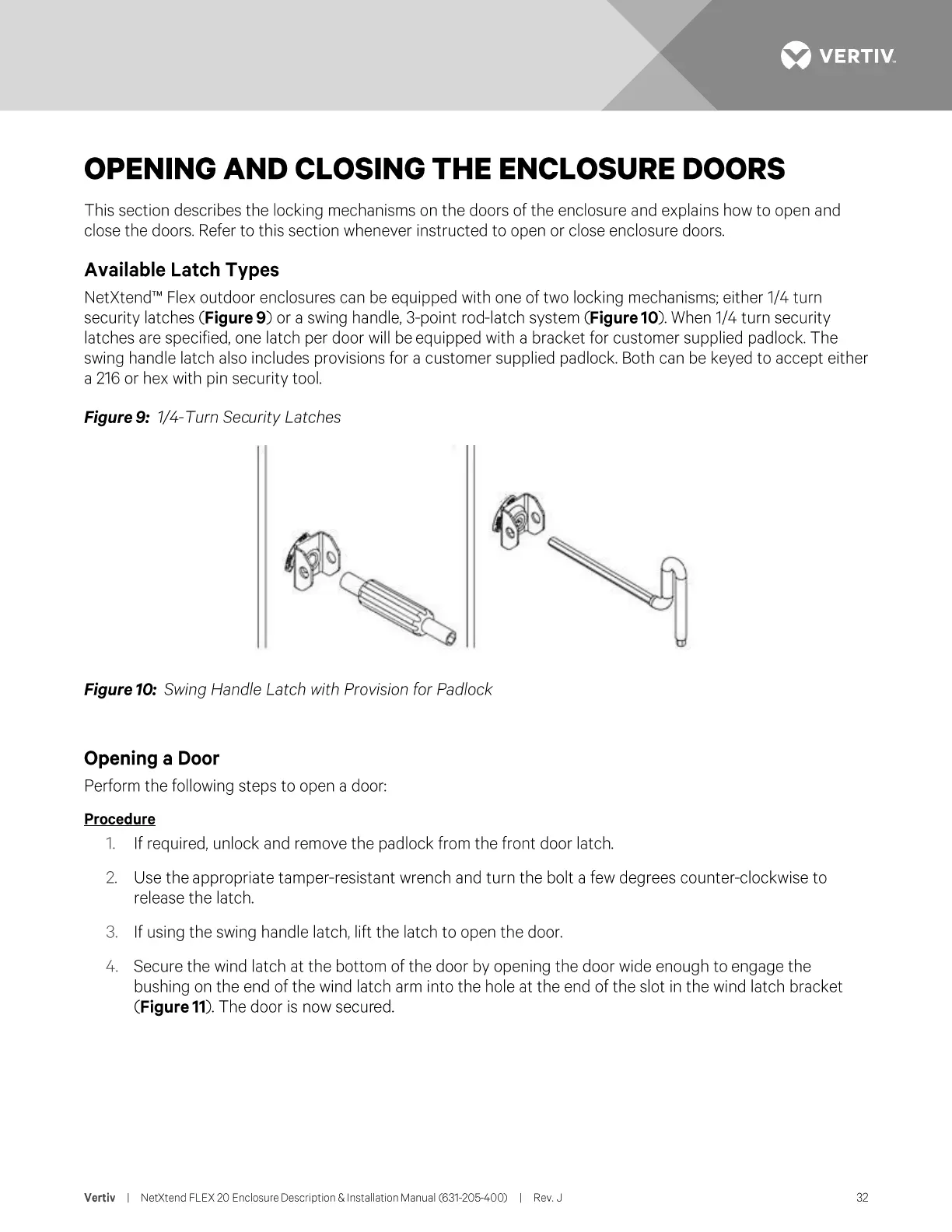 Vertiv NetXtend Flex 20 - Opening and Closing the Enclosure Doors; Opening a Door