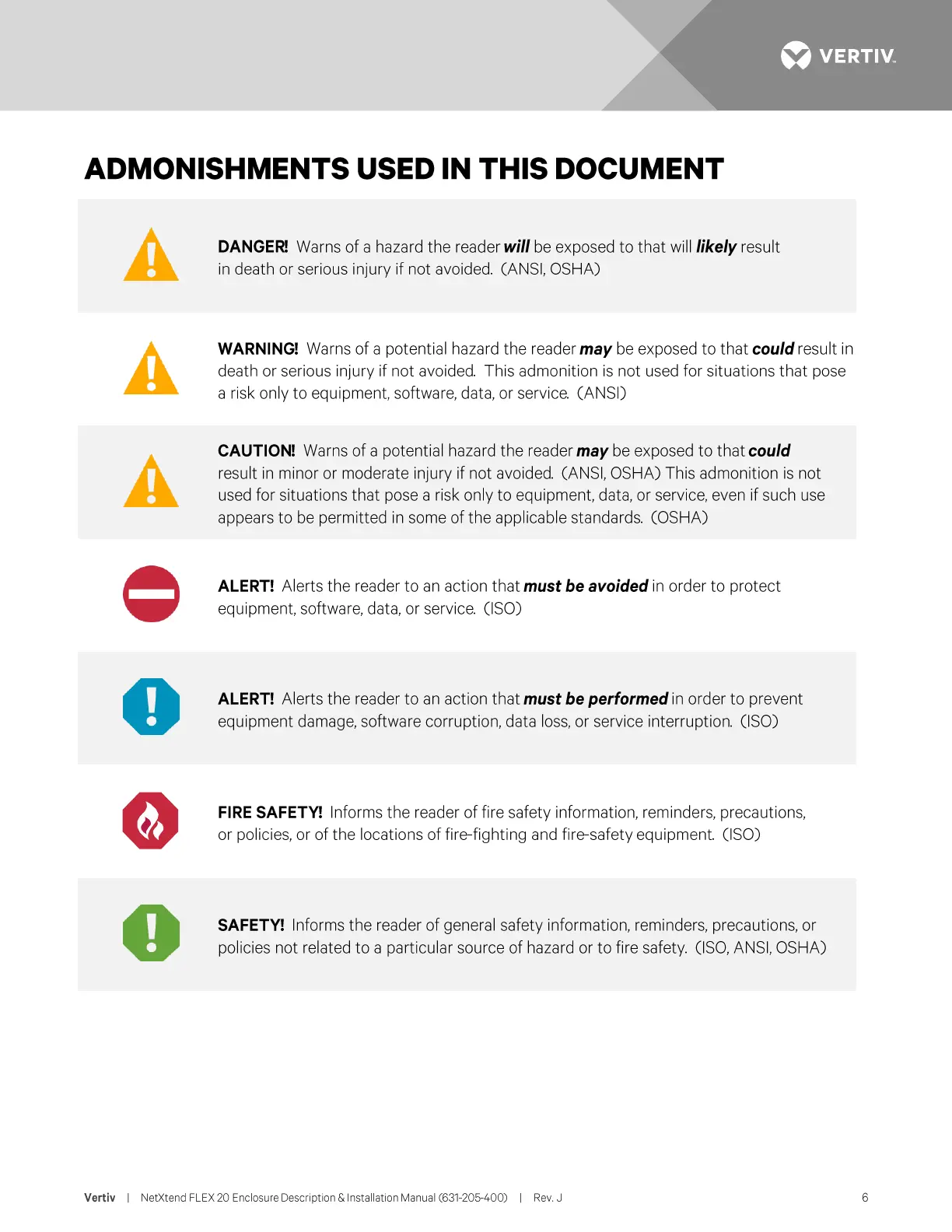 Vertiv NetXtend Flex 20 - Admonishments Used in this Document