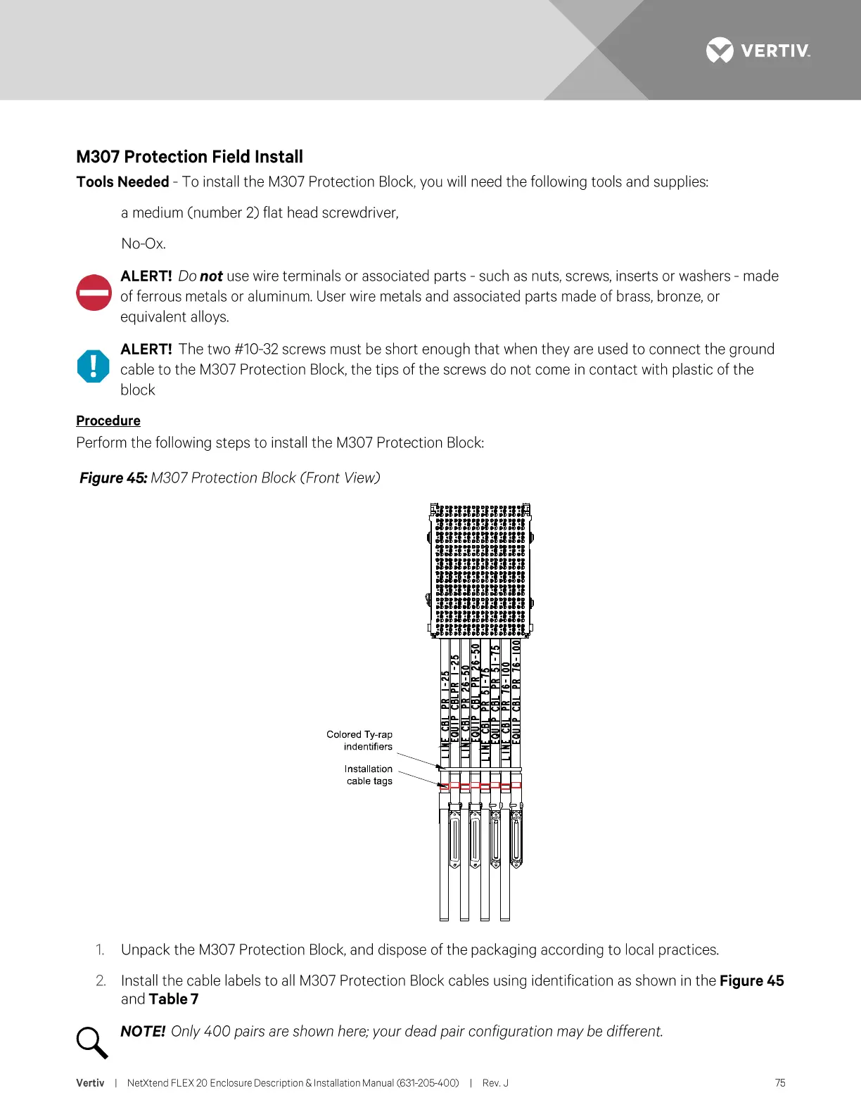 Vertiv NetXtend Flex 20 - M307 Protection Field Install; Procedure