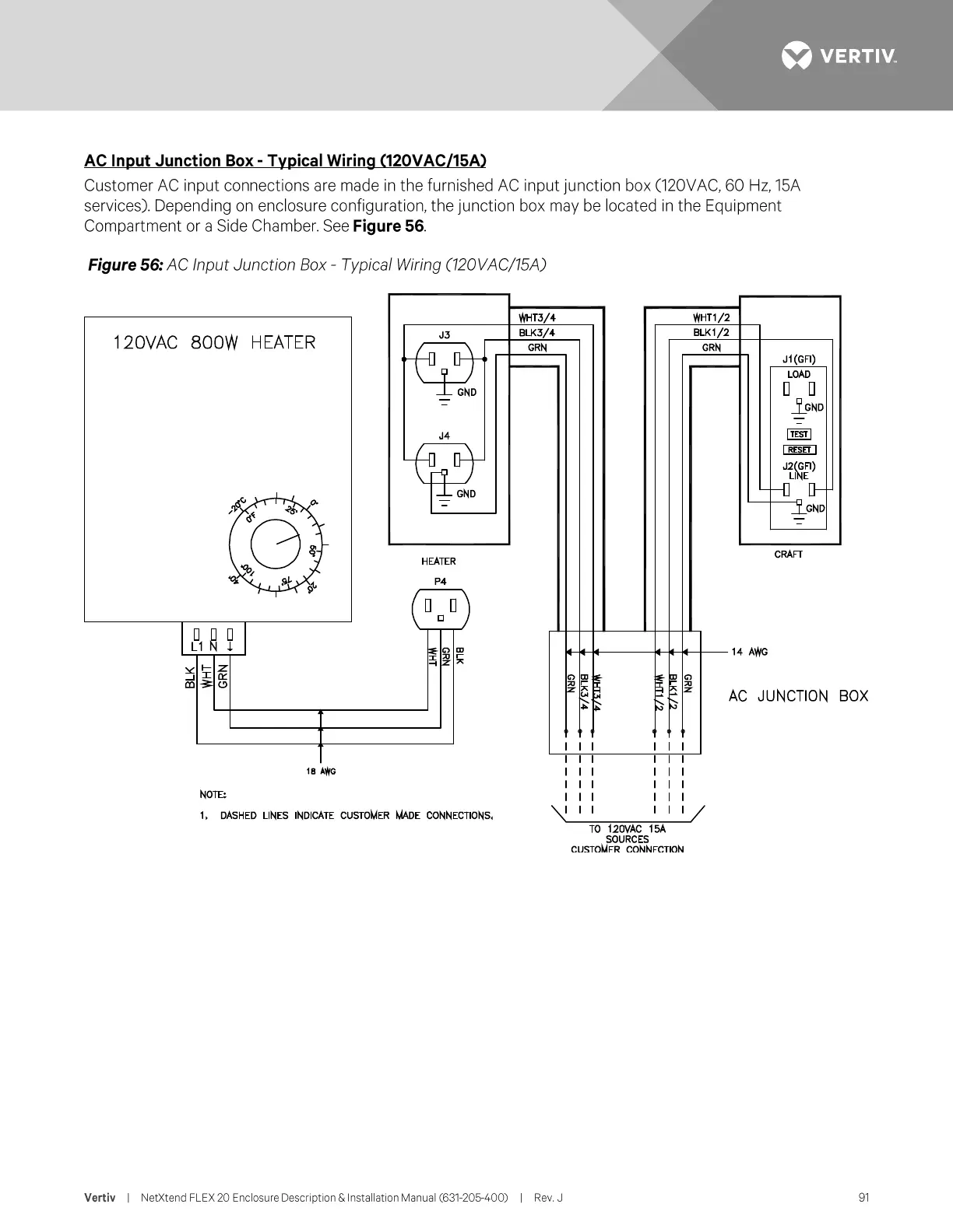 Vertiv NetXtend Flex 20 - AC Input Junction Box - Typical Wiring (120 VAC;15 A)