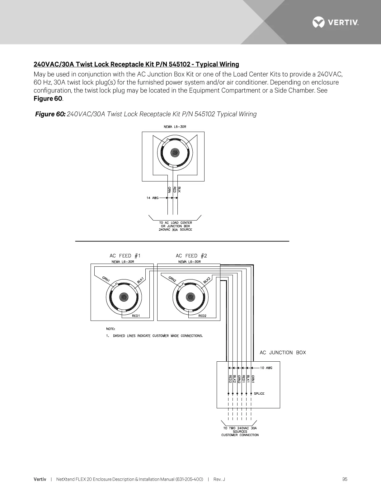 Vertiv NetXtend Flex 20 - 240 VAC;30 A Twist Lock Receptacle Kit P;N 545102 - Typical Wiring