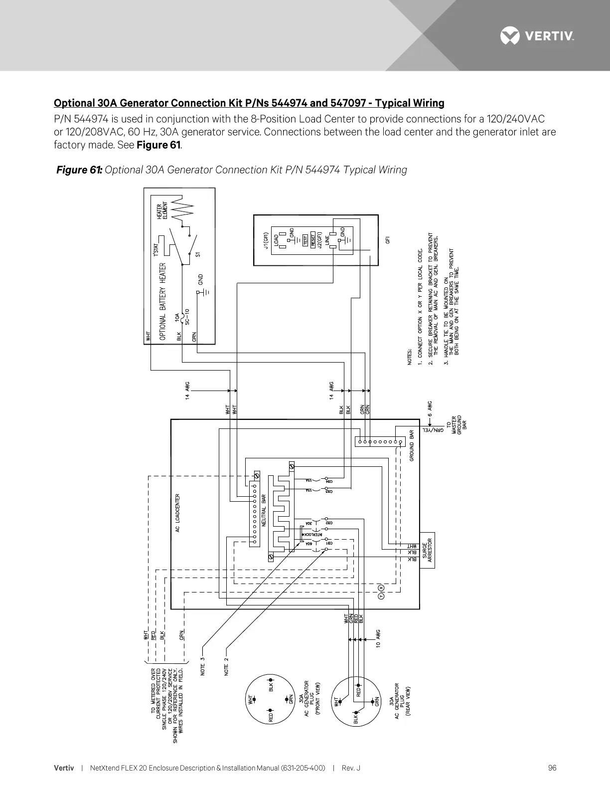 Vertiv NetXtend Flex 20 - Optional 30 A Generator Connection Kit P;Ns 544974 and 547097 - Typical Wiring