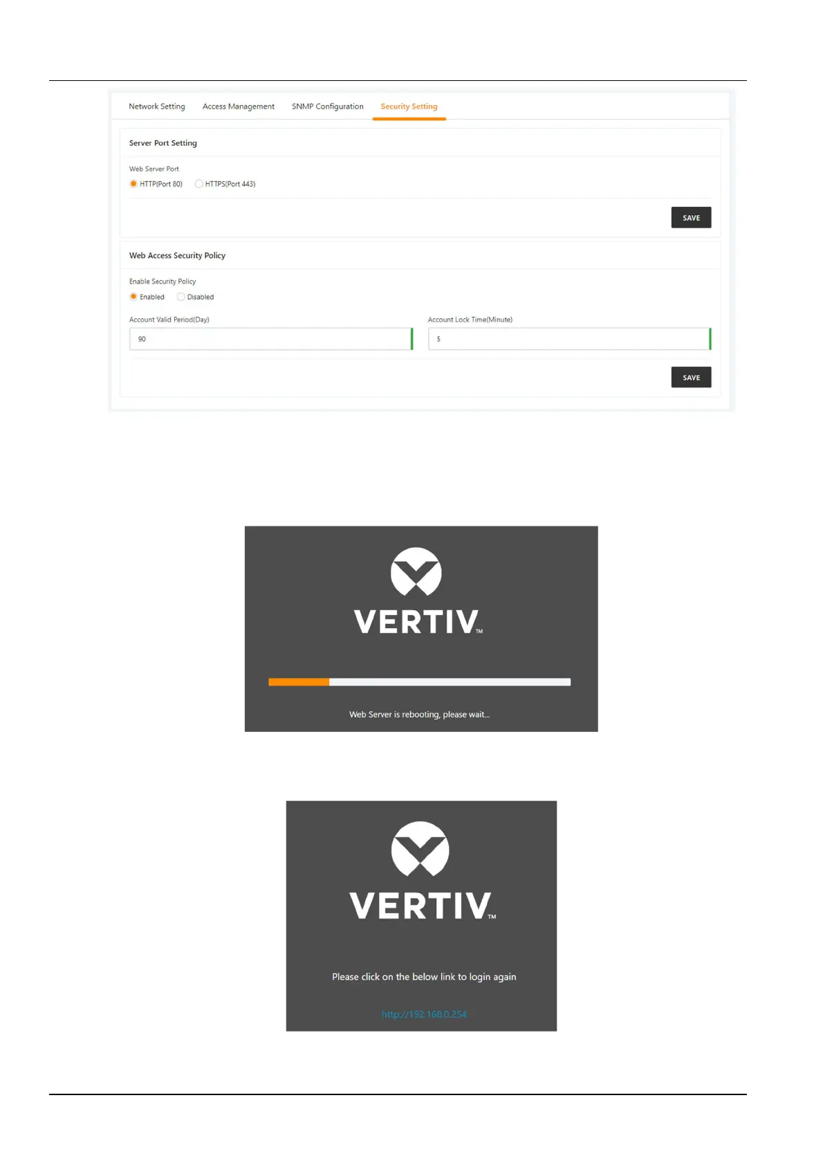 Web access port settings: The protocol that can be used to access the web page is HTTP or HTTPS. The default