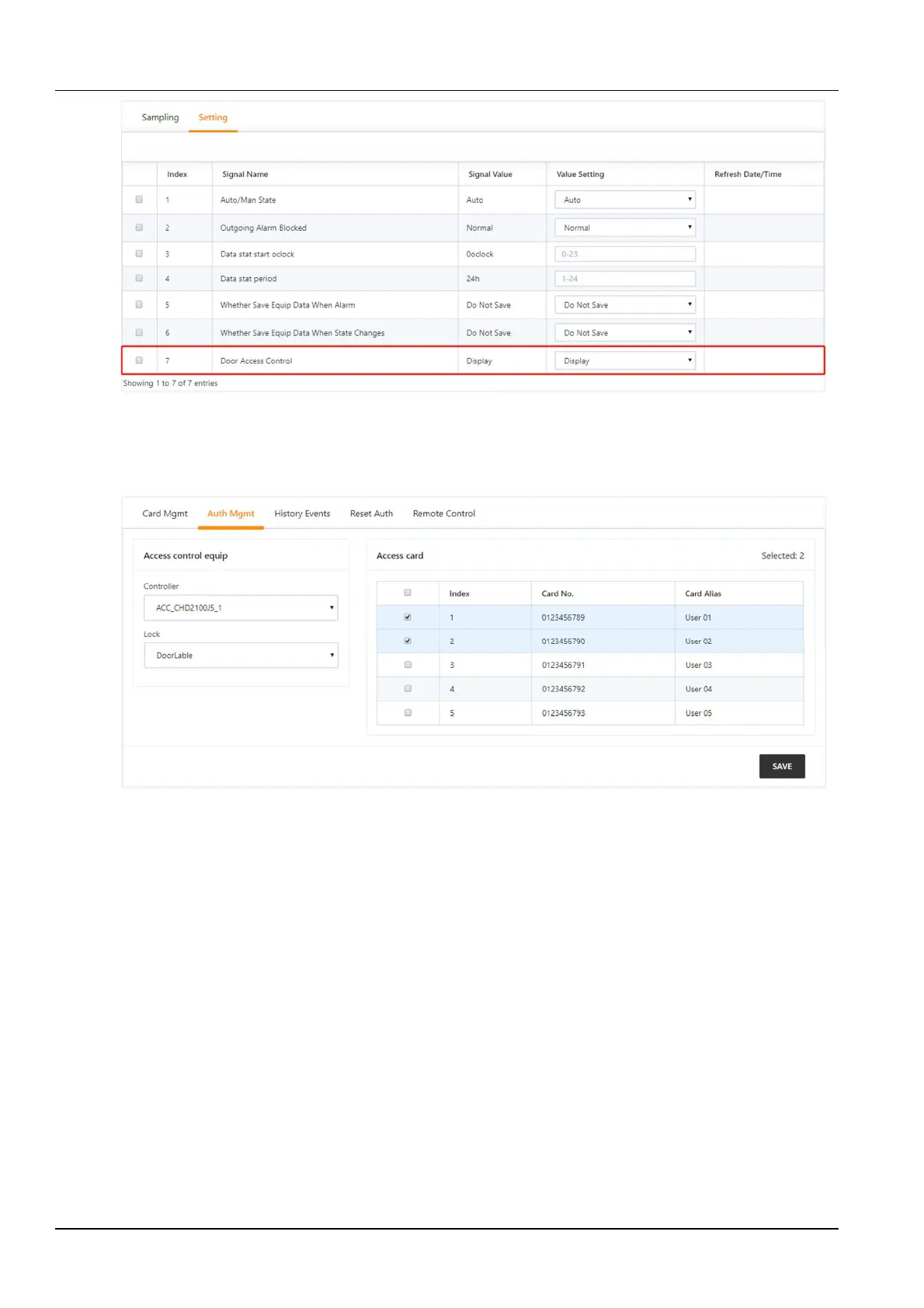 click the Save button to authorize or deauthorize the access control card.