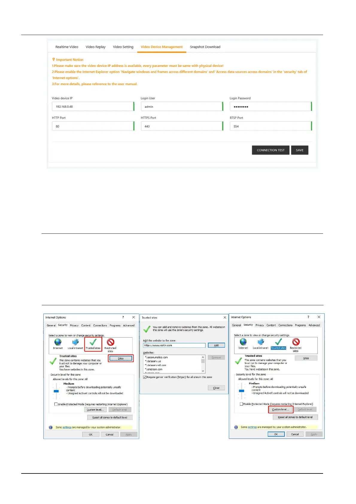 under "Security" tab in Internet Explorer "Internet Options", as shown in Figure 3-25 and Figure 3-26.