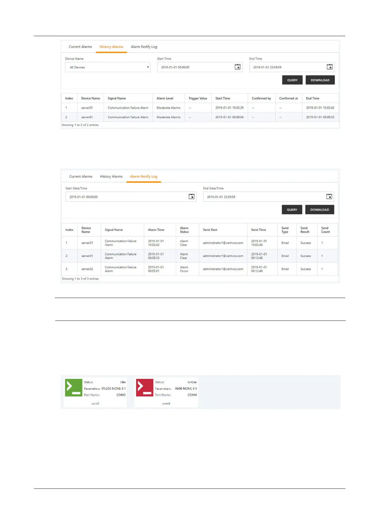 Click the Alarm Notification Log tab to display the page shown in Figure 3-44. Select the start time and end time,