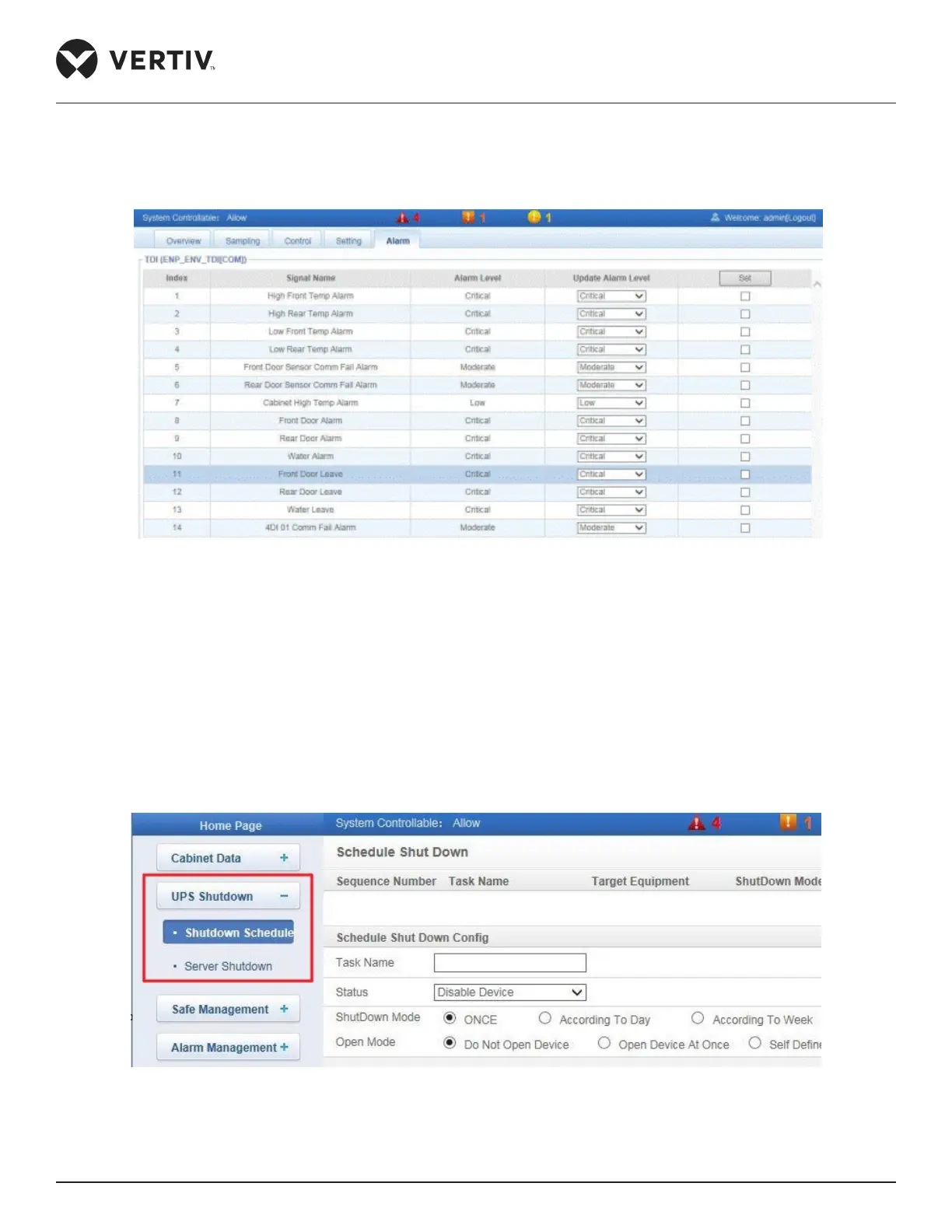 Click UPS Shutdown menu to display two sub menus viz. Shutdown Schedule and Server Shutdown as shown