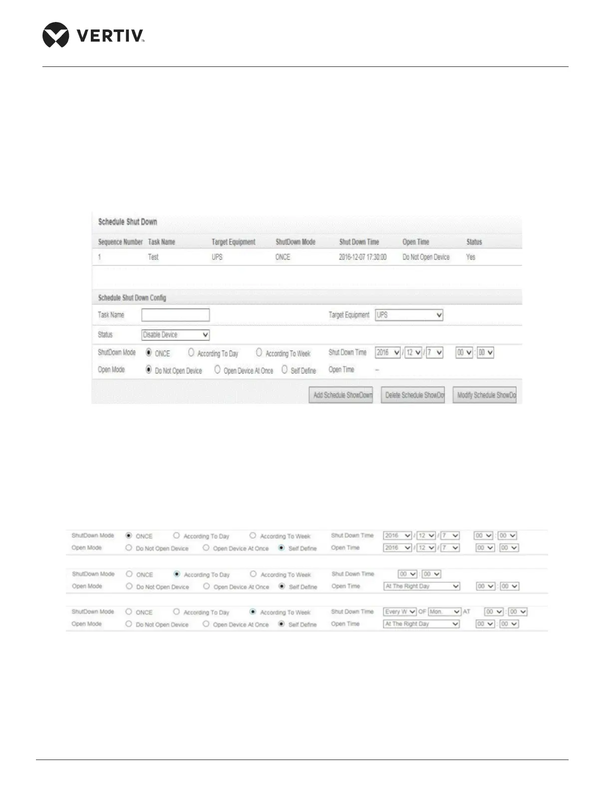 The Shutdown Schedule function is used to add, delete, and modify the schedule shutdown task of UPS
